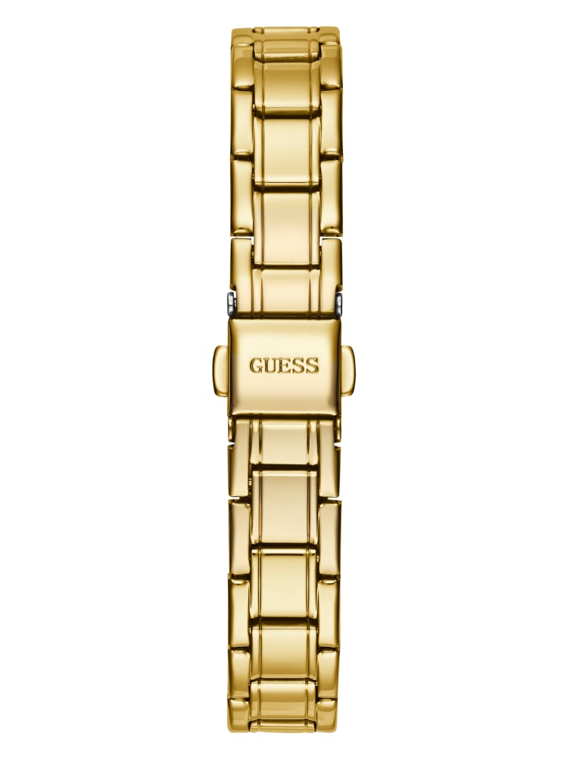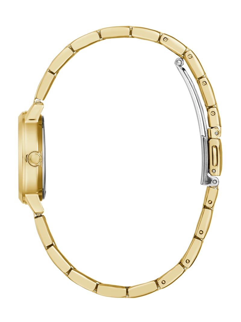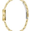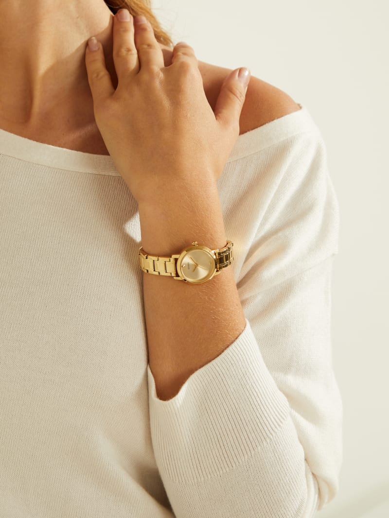 Achieve a sleek and classic finish with this petite analog timepiece, designed in gold-tone stainless steel, with a genuine diamond marker and bracelet.
