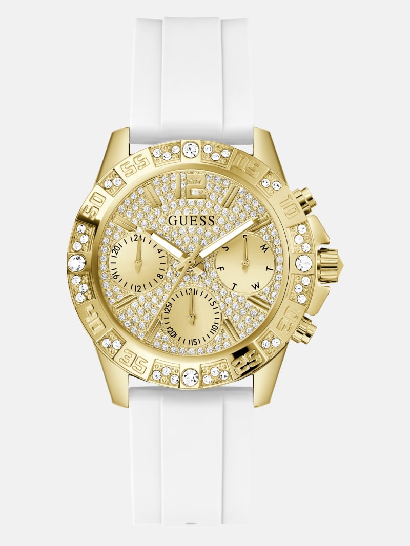 - Gold-tone and white analog watch