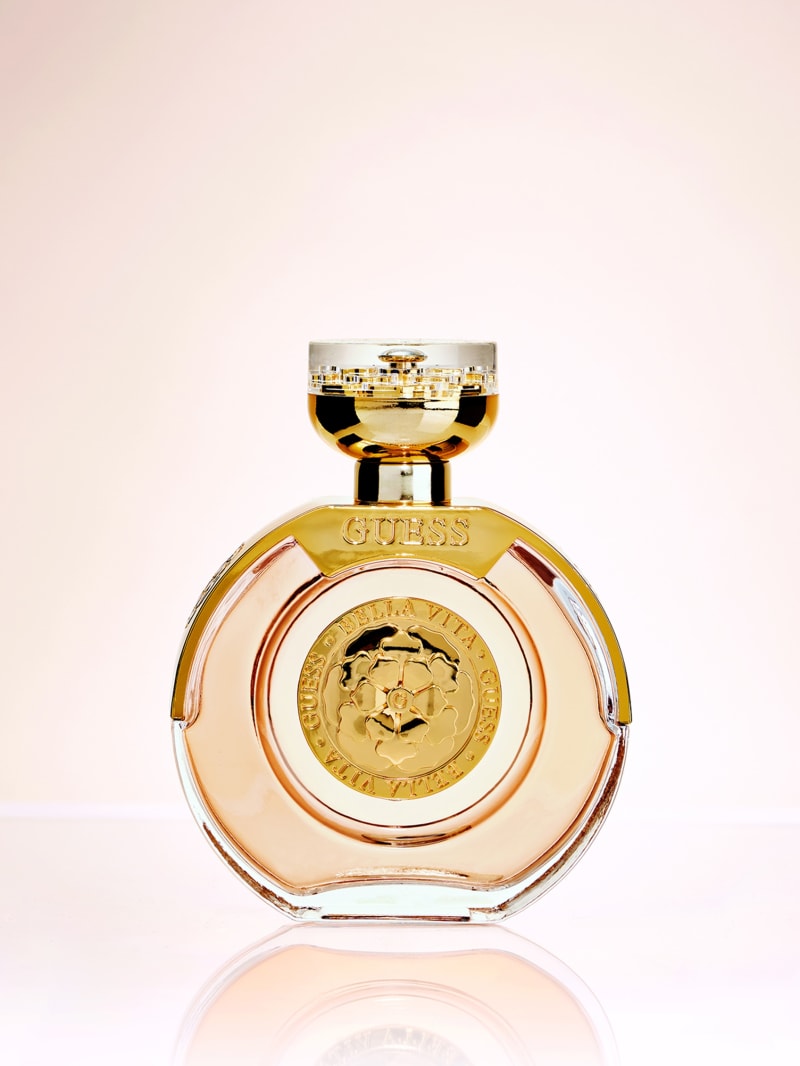 Meet GUESS Bella Vita. This alluring perfume is a blend of sparkling black cherry, complemented by hypnotic tuberose and finished with radiant Tonka bean for a captivating scent that will leave an unforgettable impression.