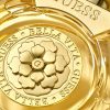 - Faux-leather gold cosmetic pouch with top-zip closure