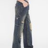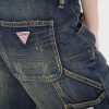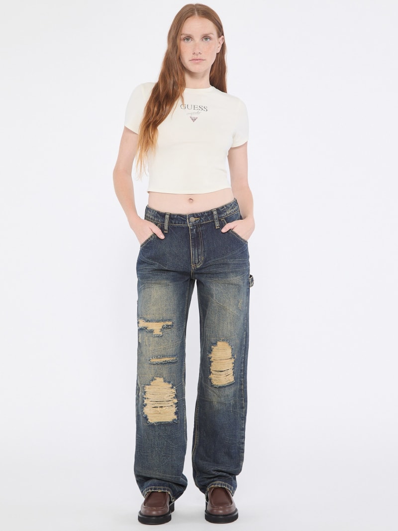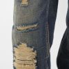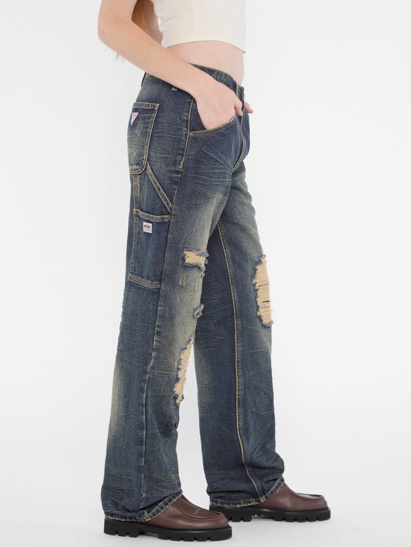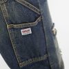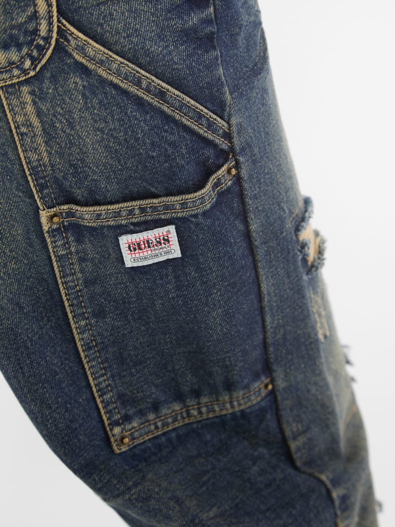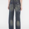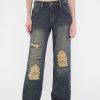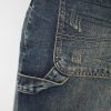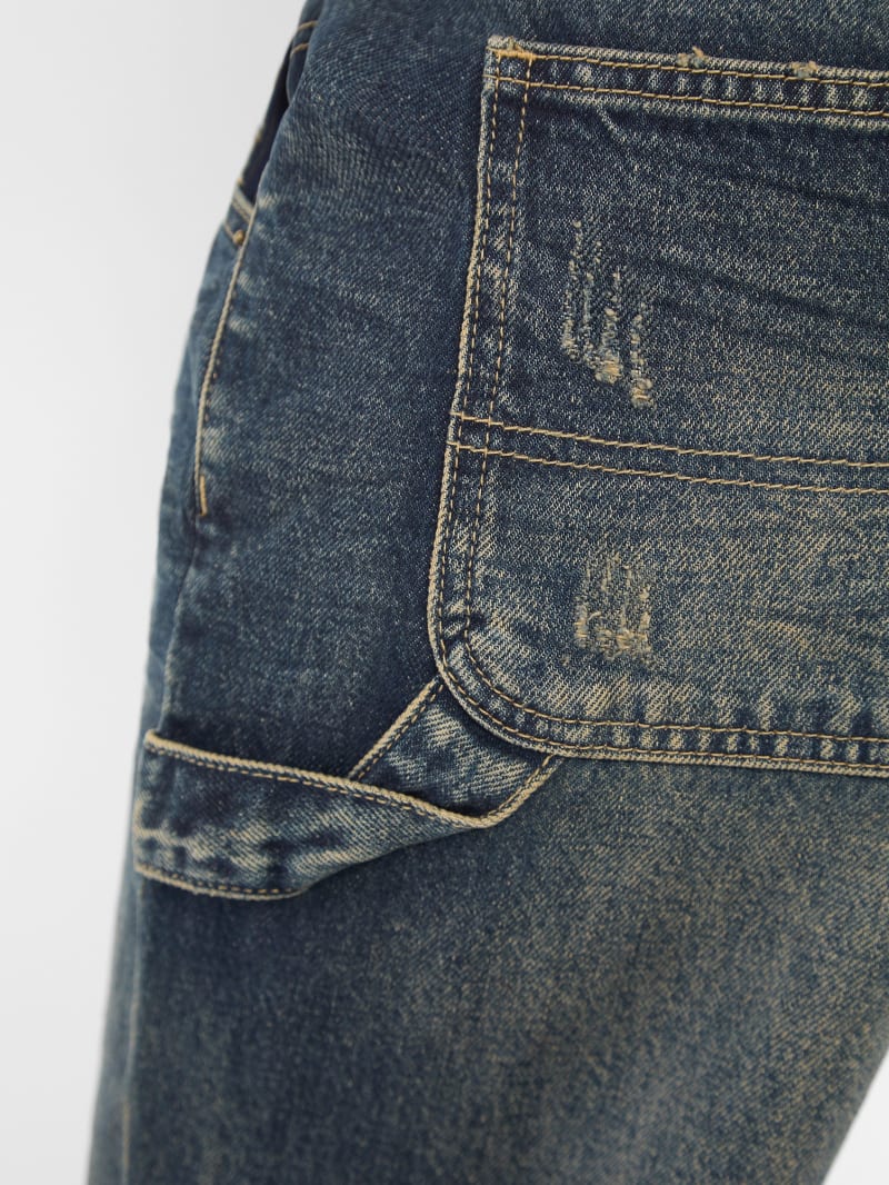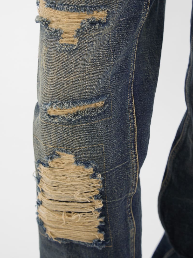 - Dark-wash denim with intentional distress and fading. Each garment has its own unique appearance.
