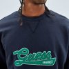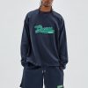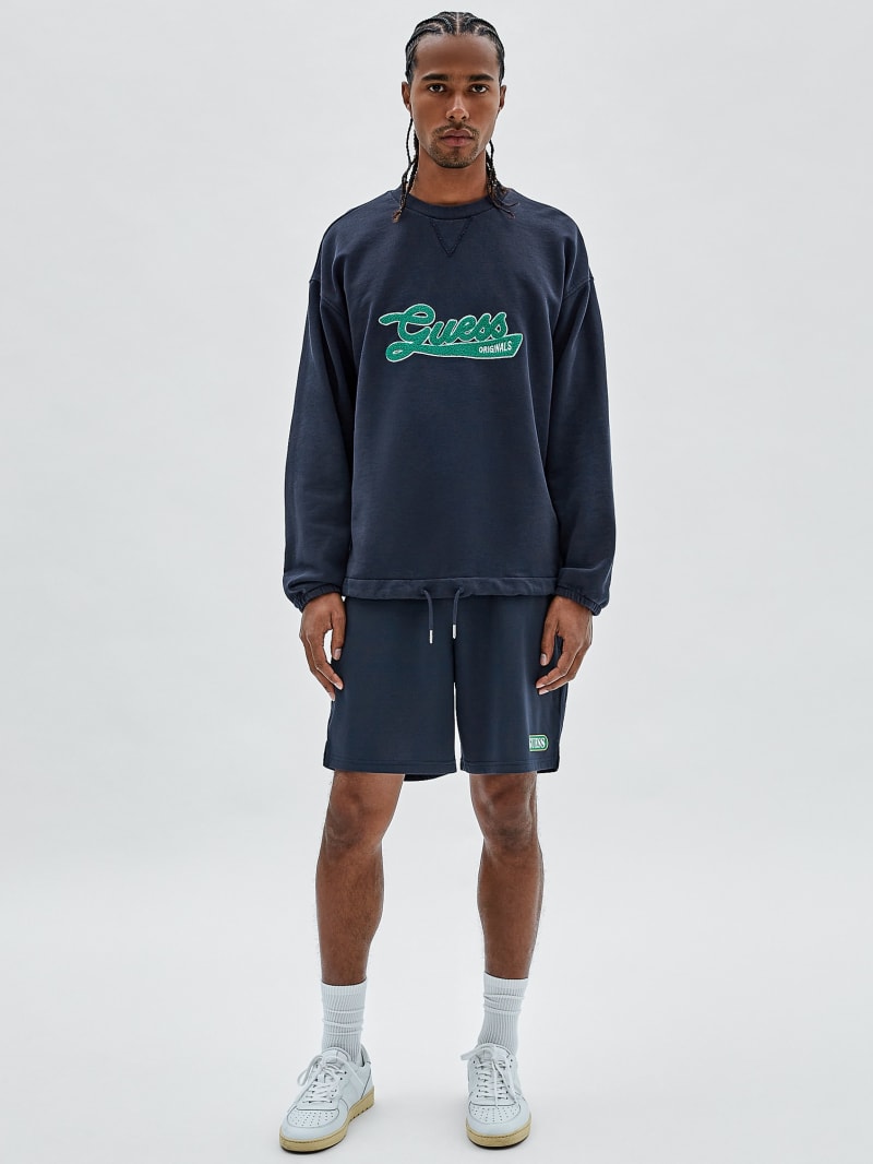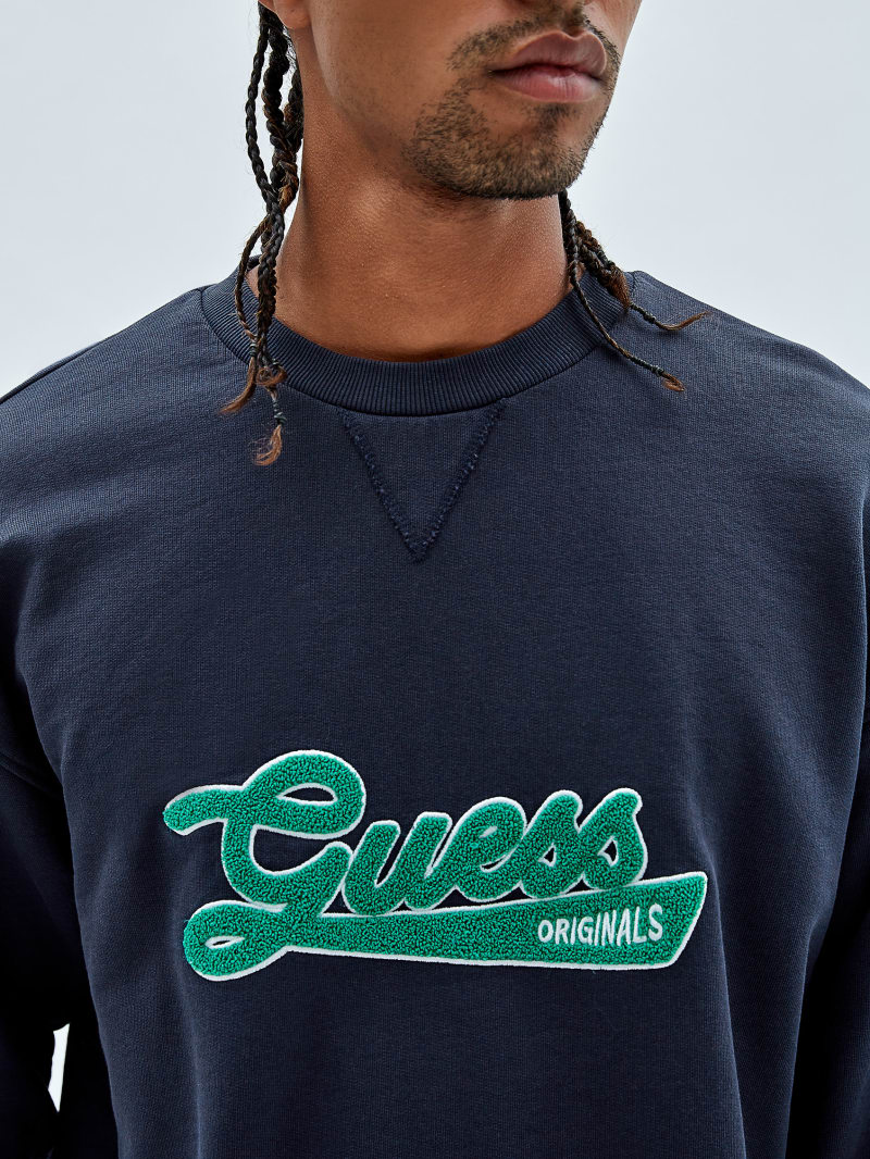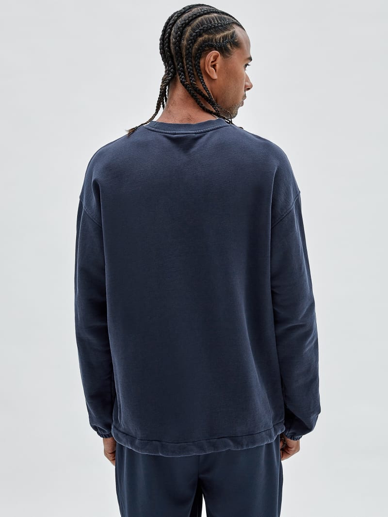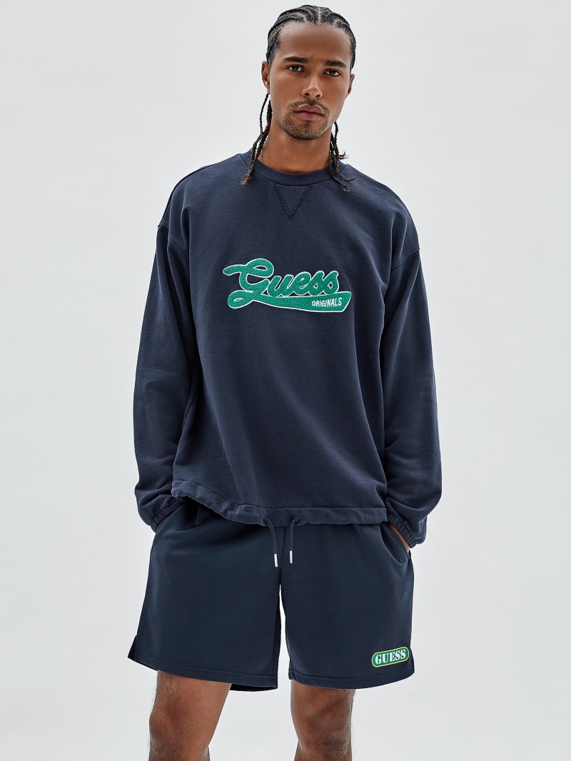 This terry sweatshirt features a front logo, drawstring waist with metal tips, a crew neckline and long sleeves.
