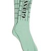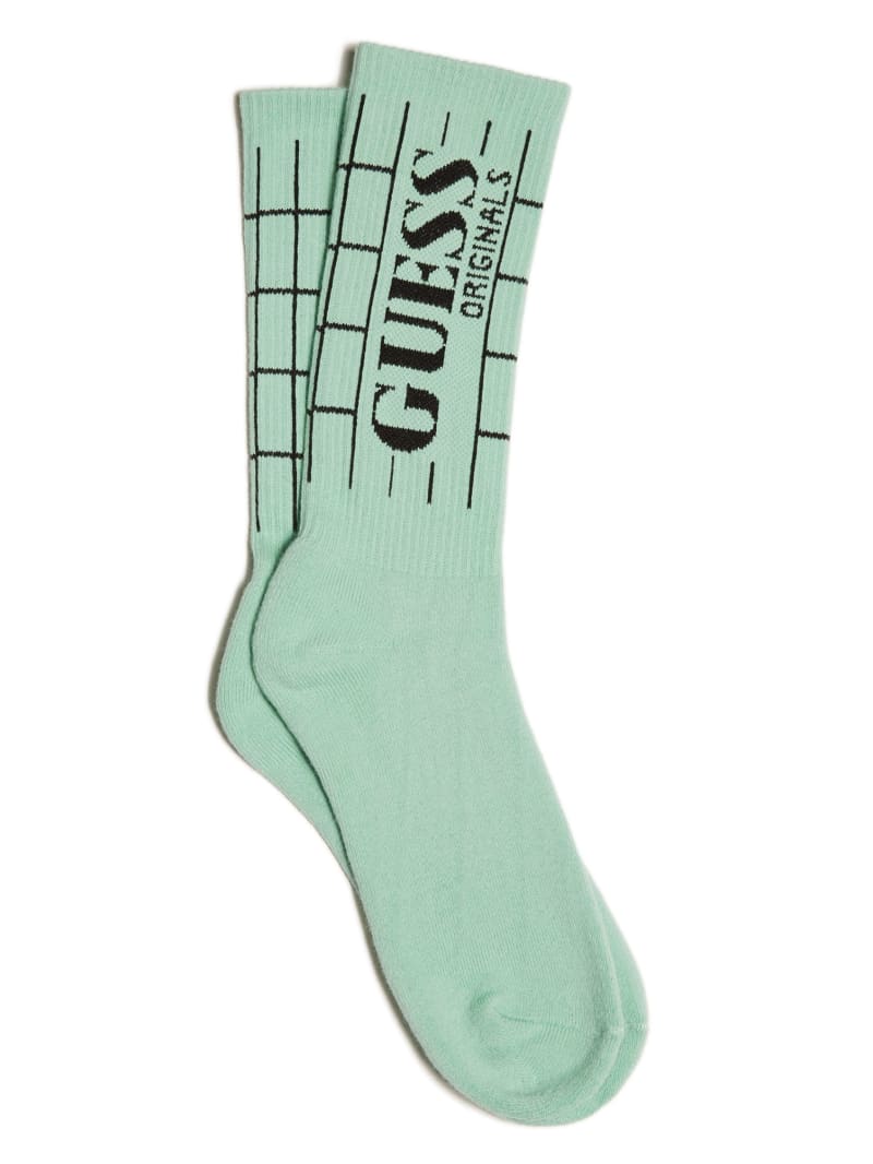 A pair of cotton-blend crew socks featuring a grid pattern with logo.