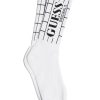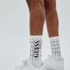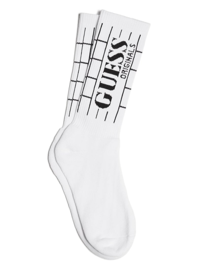 A pair of cotton-blend crew socks featuring a grid pattern with logo.