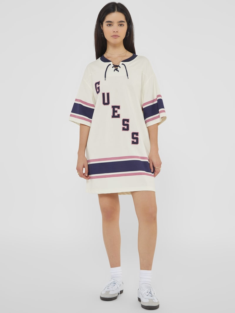 - Jersey-inspired t-shirt dress