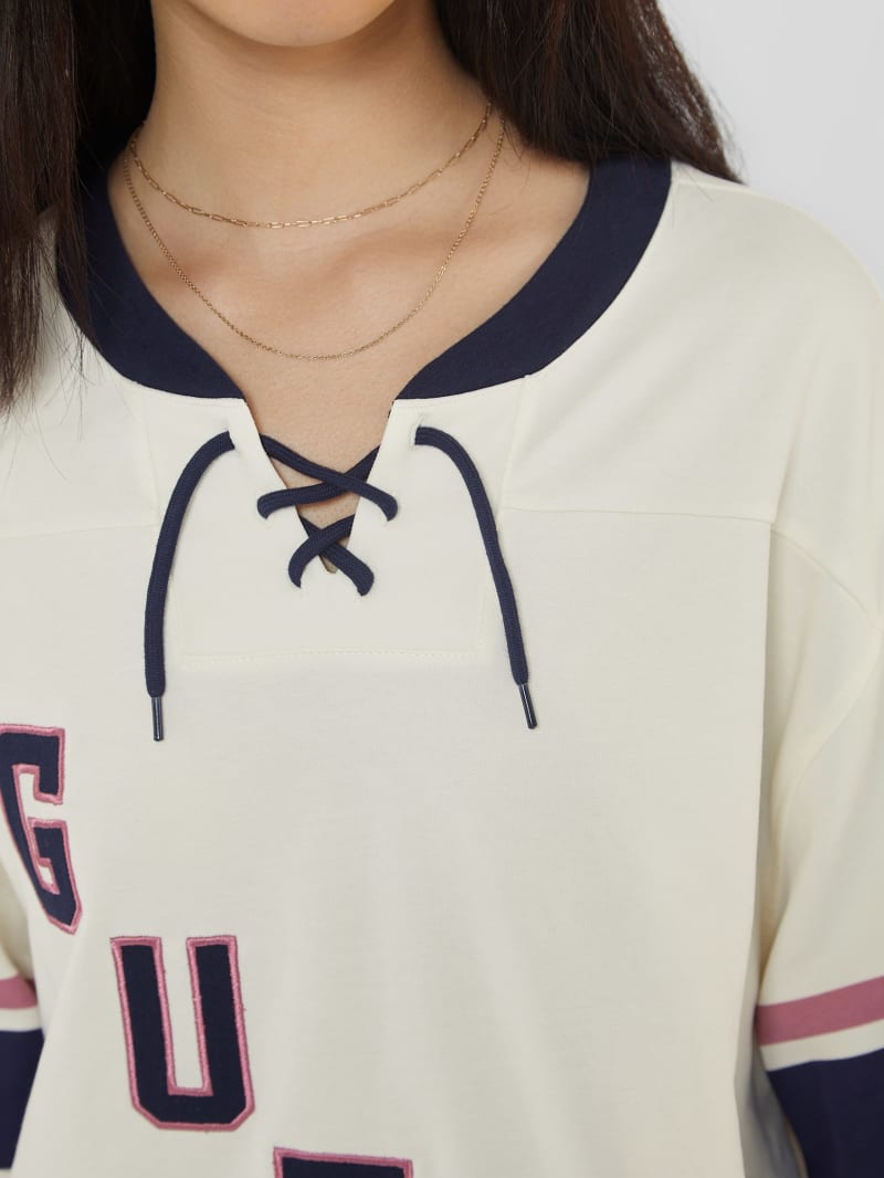- V-neckline with lace-up detail