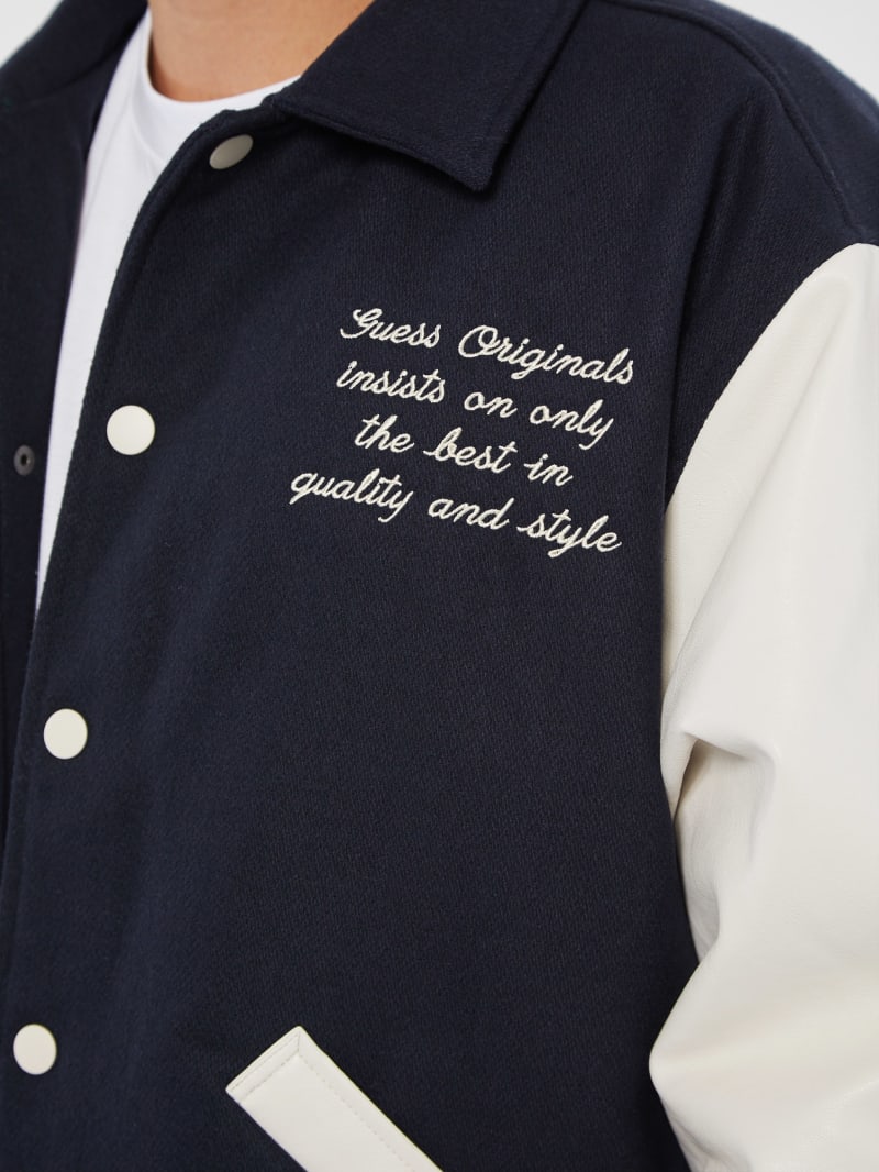 - Body: 60% Polyester, 40% Wool. Sleeves: 100% Polyurethane. Lining: 100% Acetate.