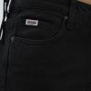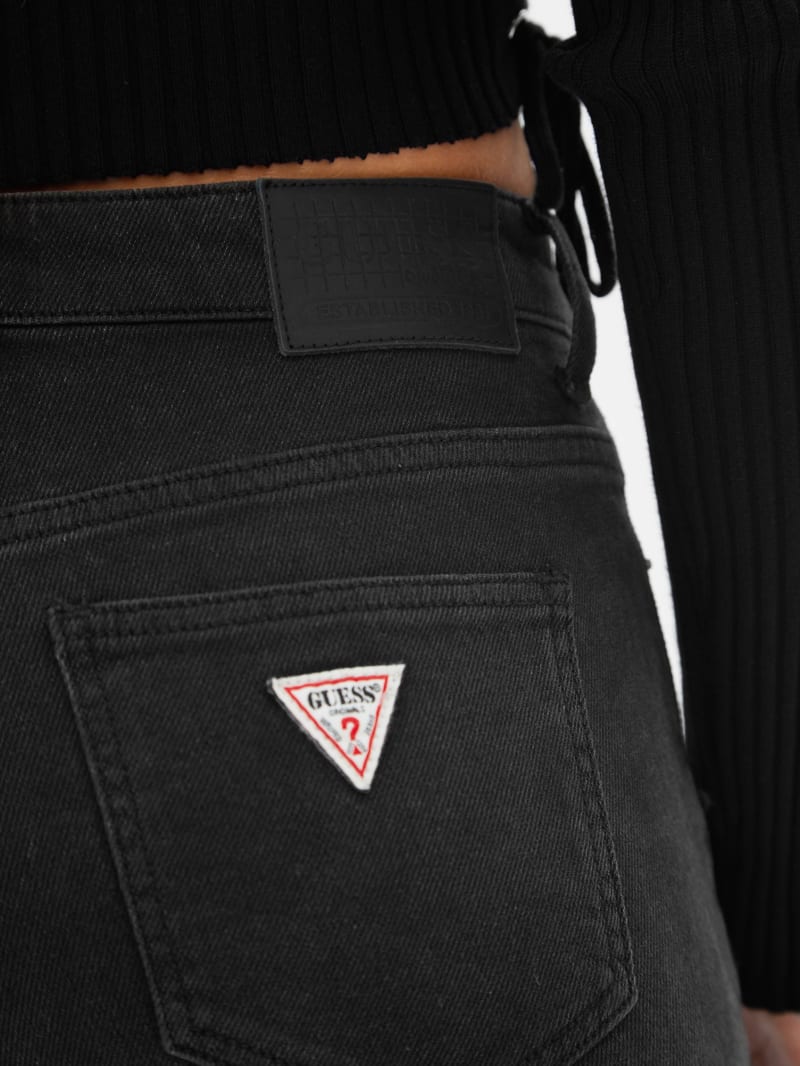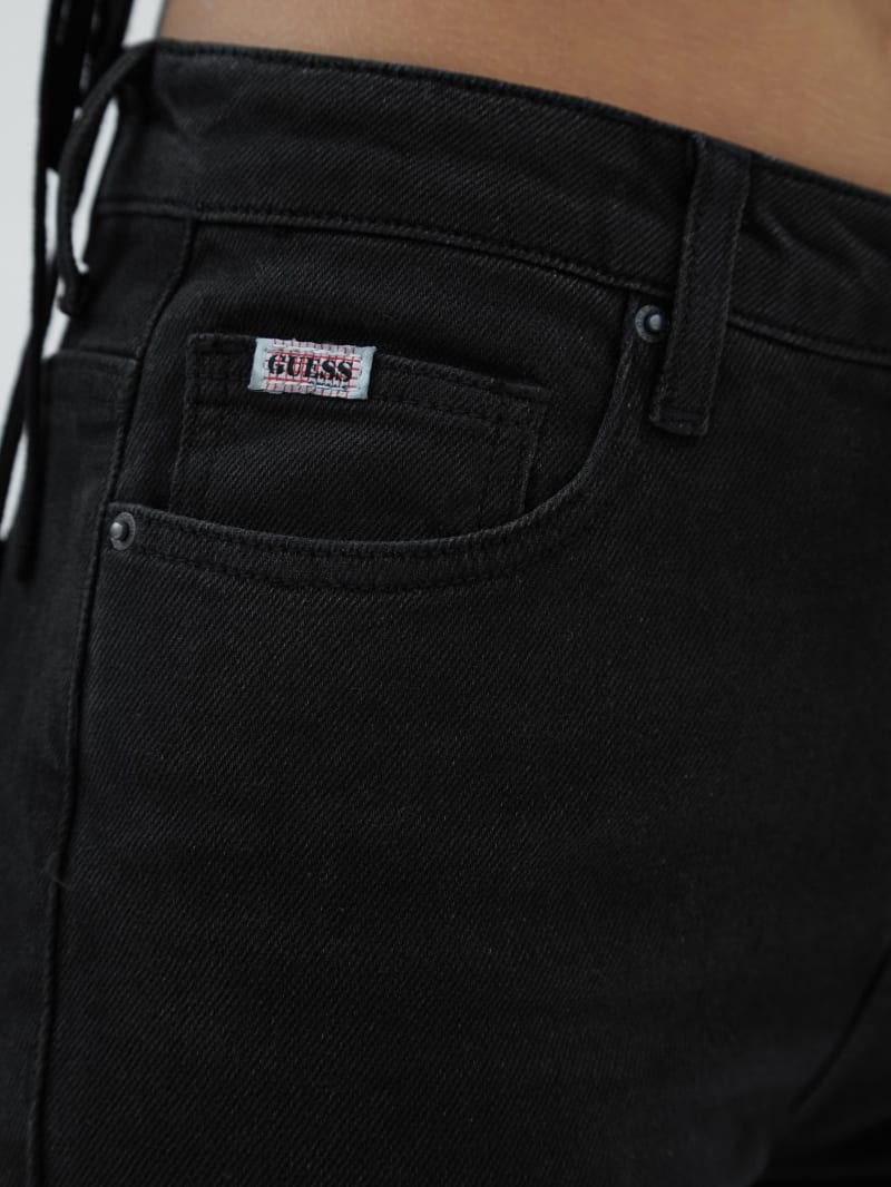 - Black denim with a washed look. Due to the nature of the fabric and wash, each garment has its own unique appearance.