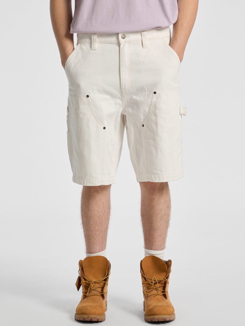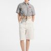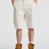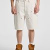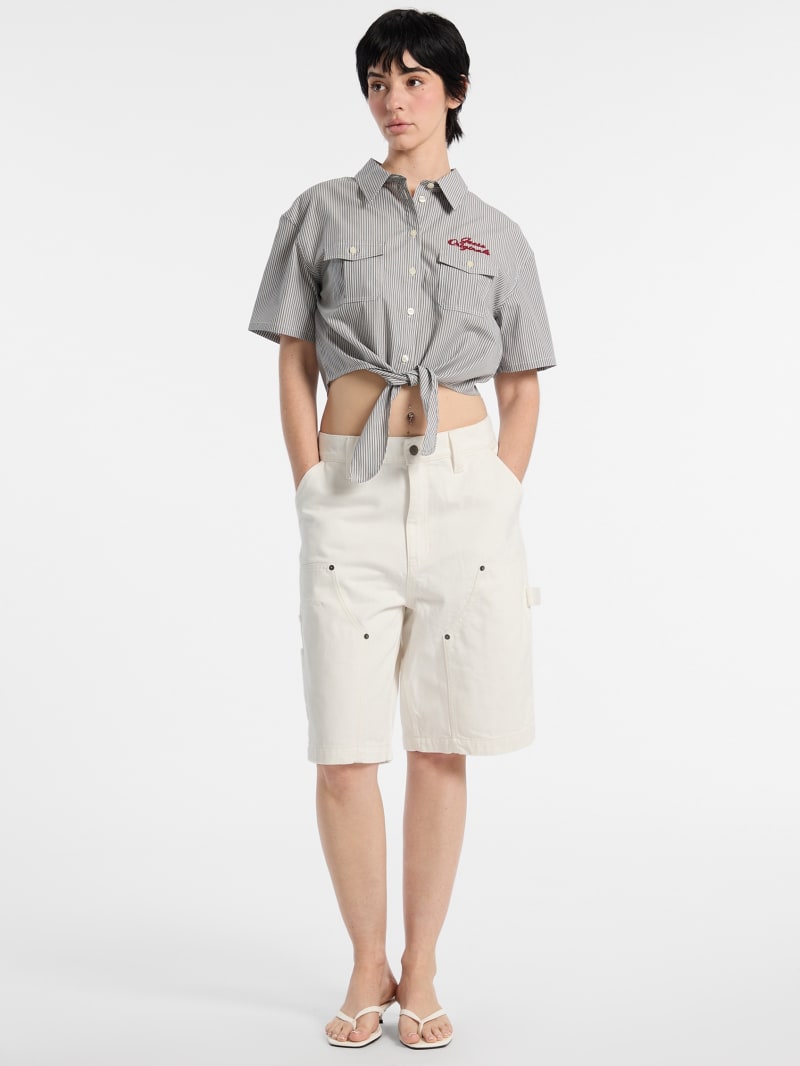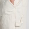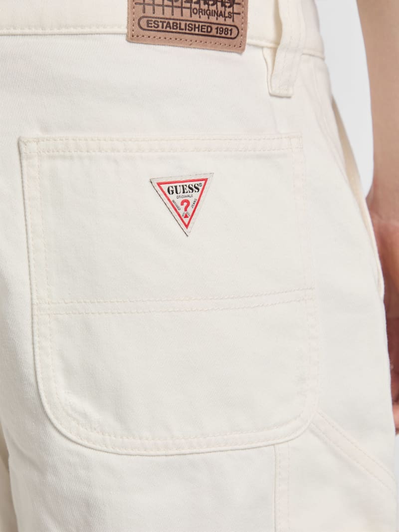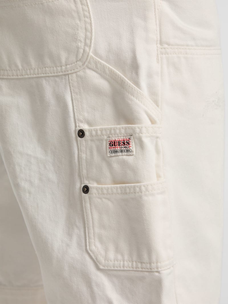 - Washed ecru denim with distressing. Each garment has its own unique appearance.