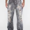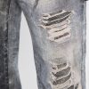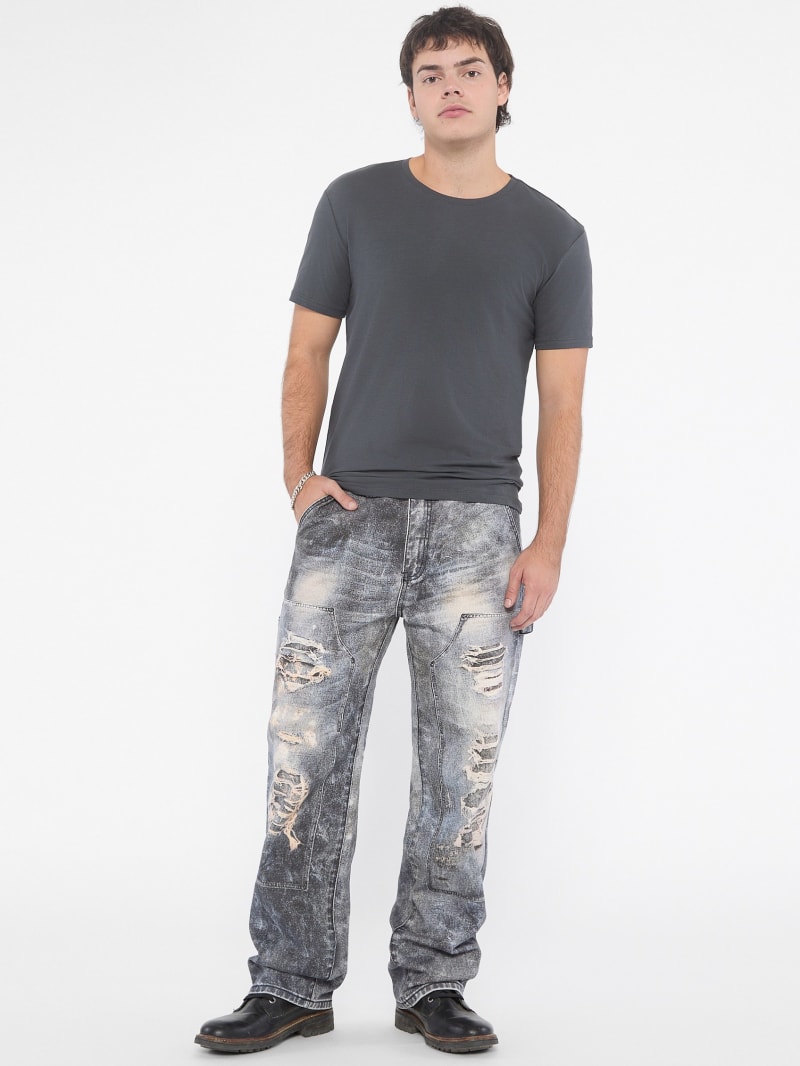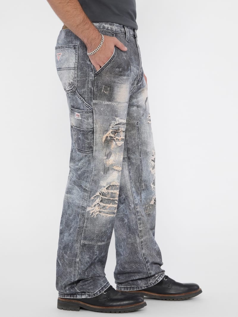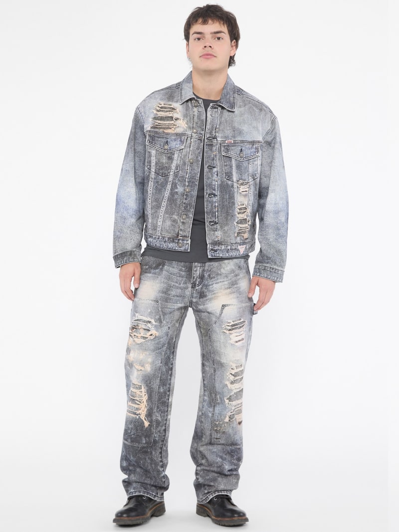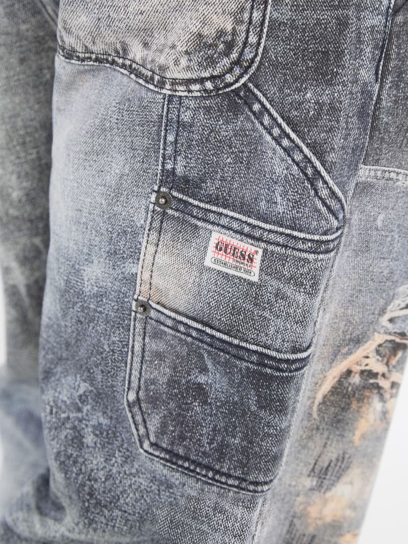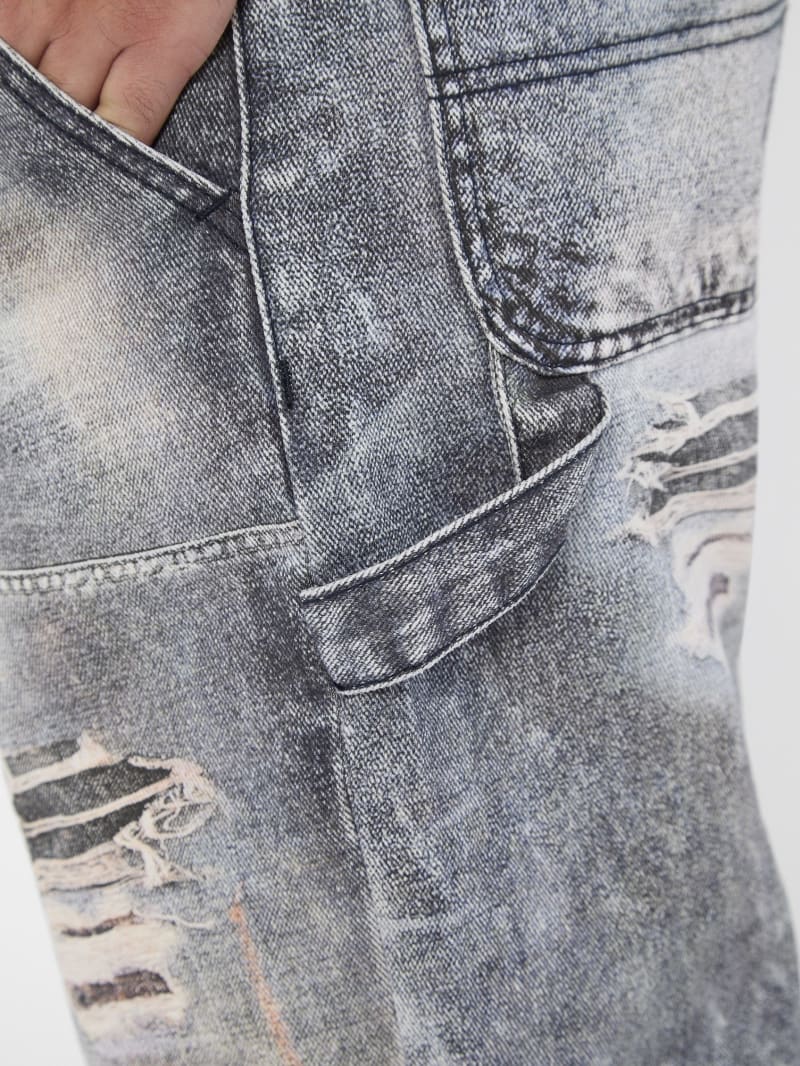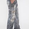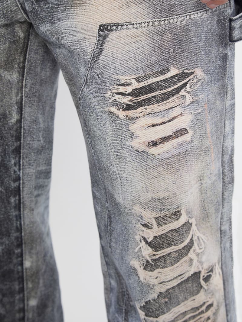 - Printed denim with destroyed detailing. Each garment has its own unique appearance.
