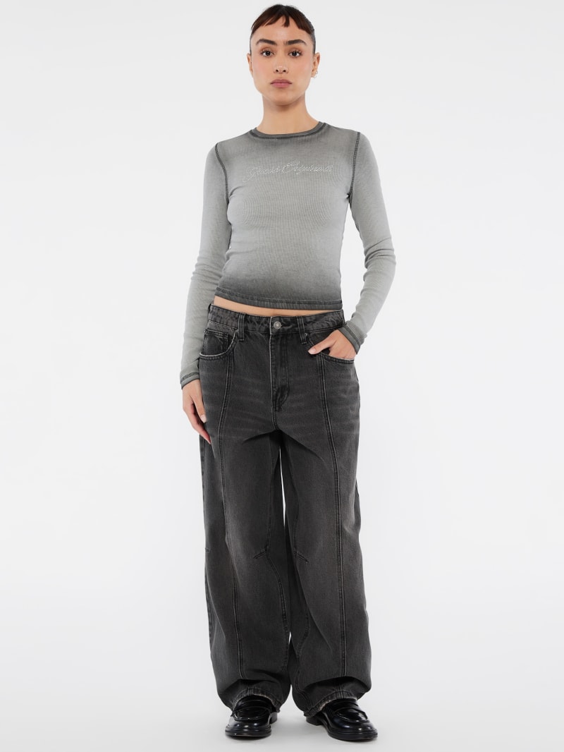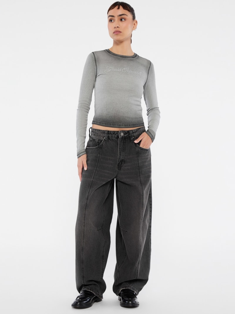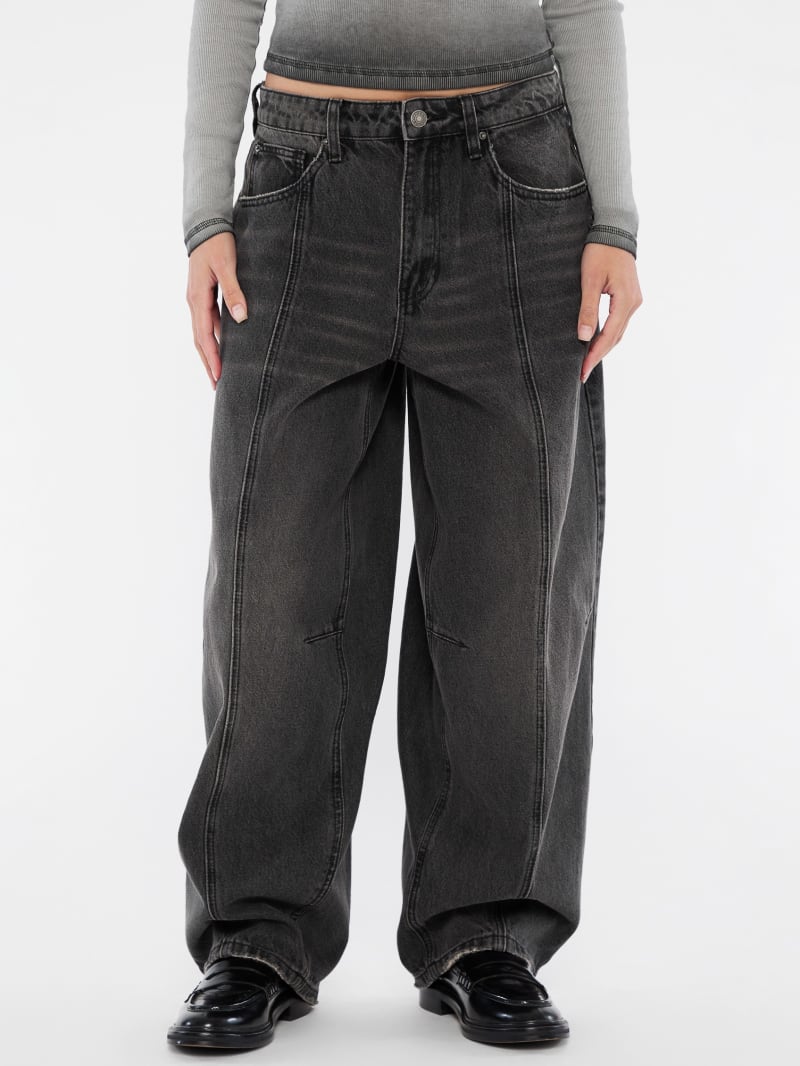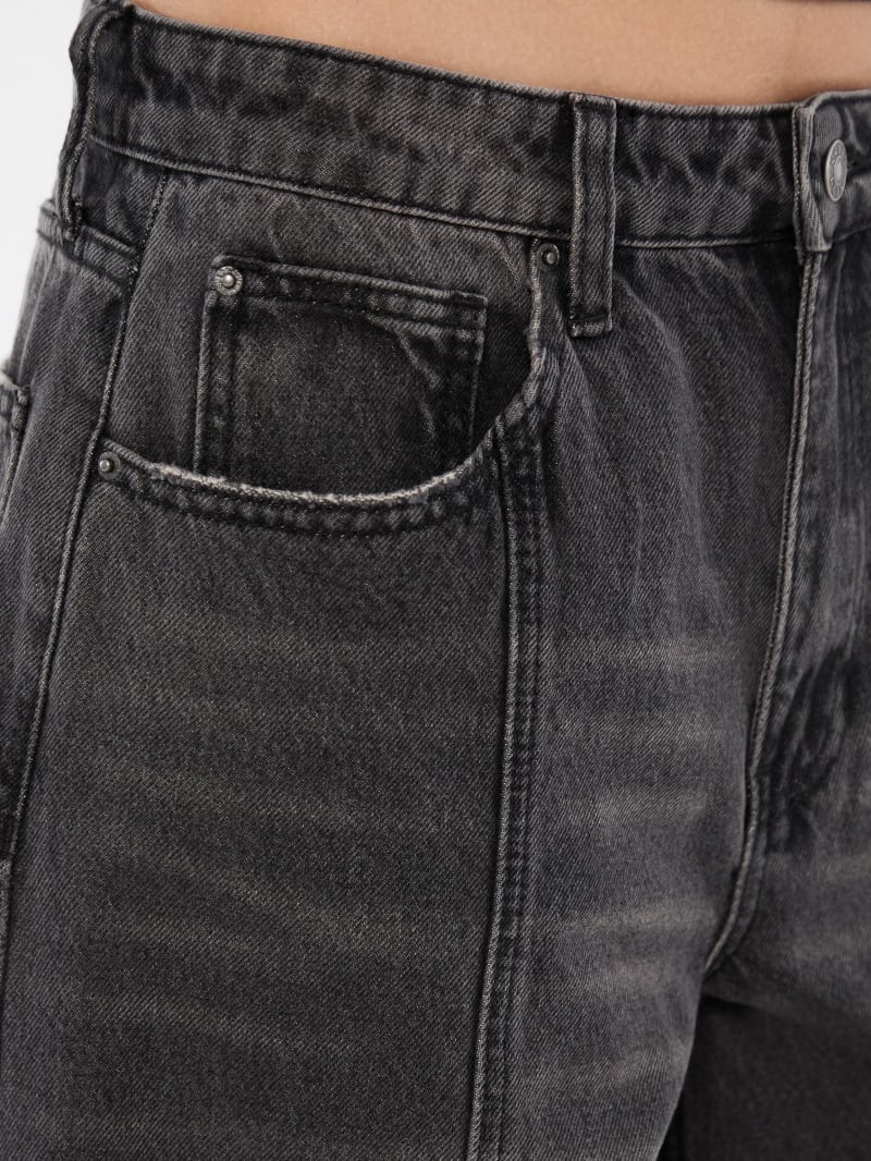 - Sanded black wash denim. Each garment has its own unique appearance.