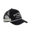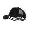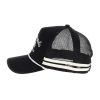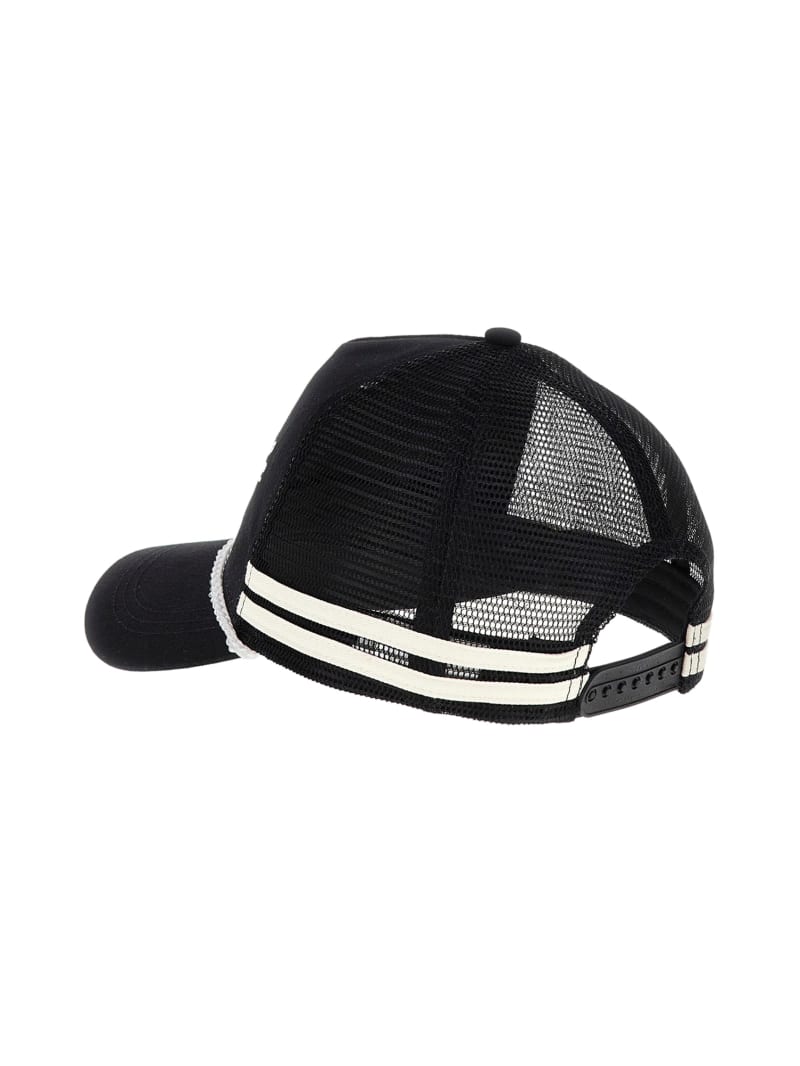 - Contrasting mesh back with striped trim