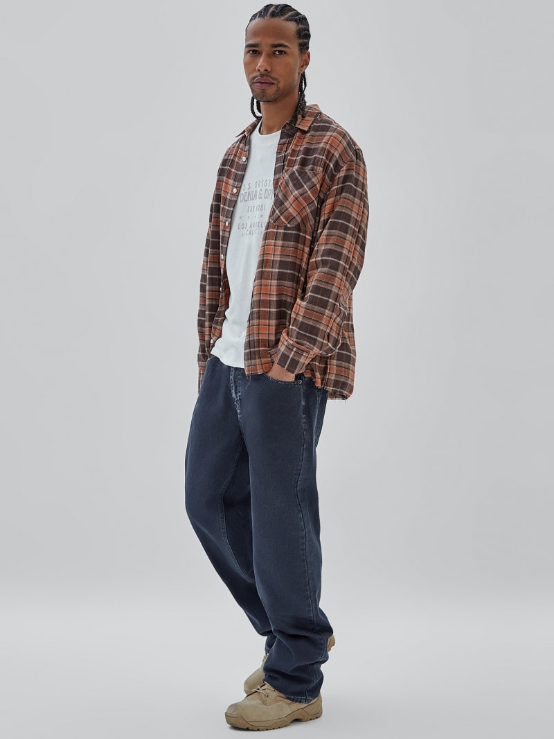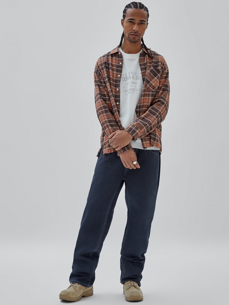 - Plaid flannel shirt
