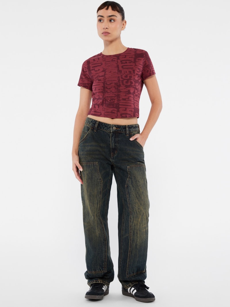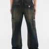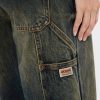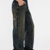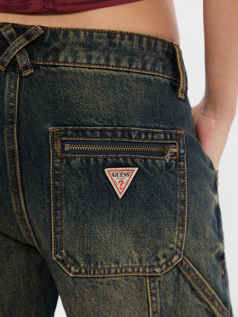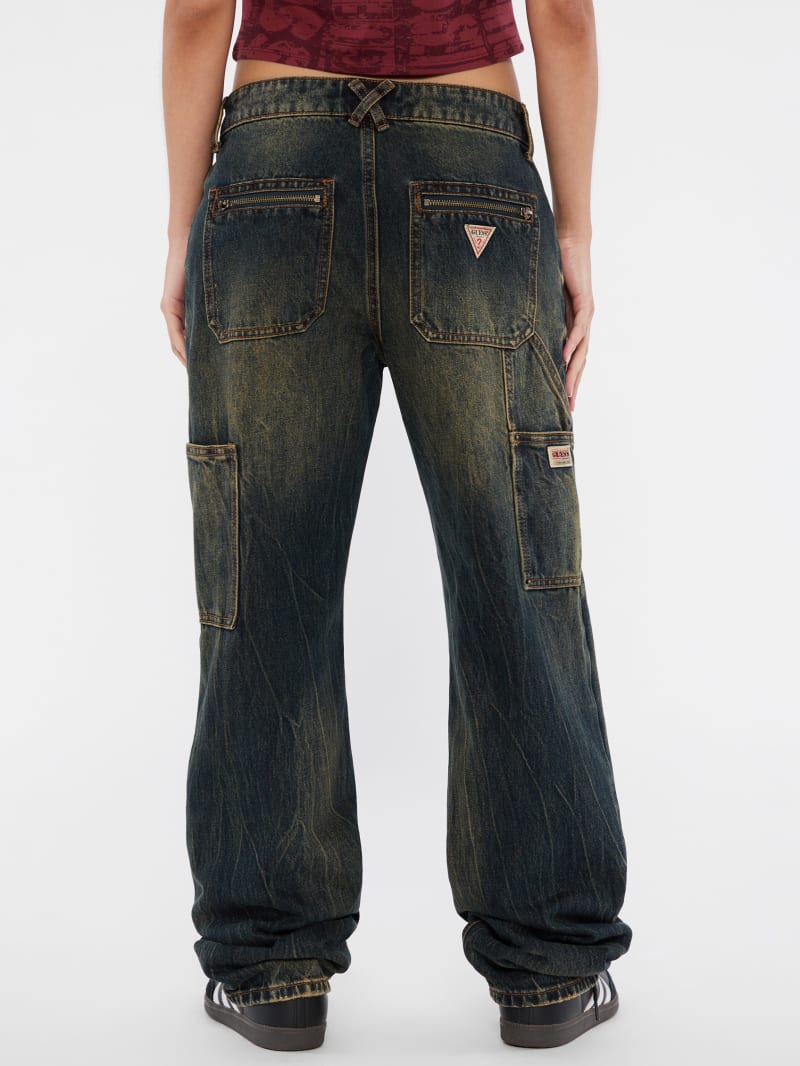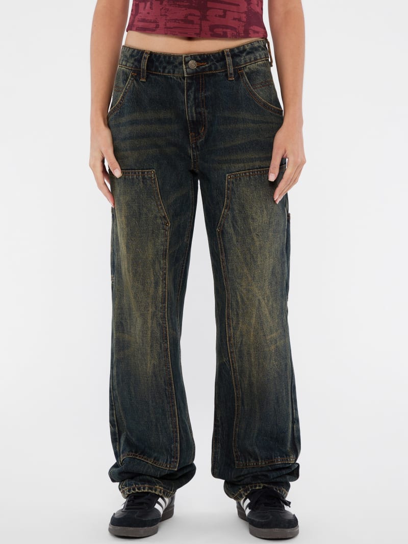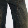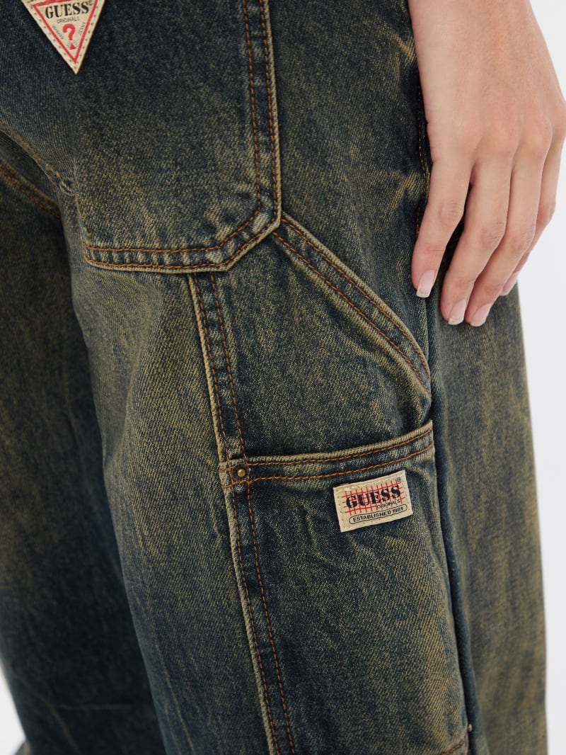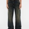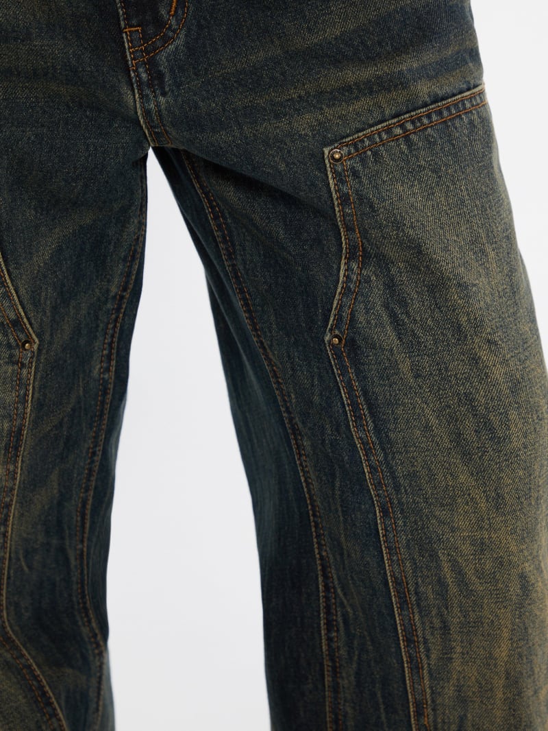 - Sanded dark-wash indigo denim. Each garment has its own unique appearance.