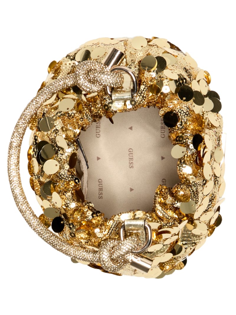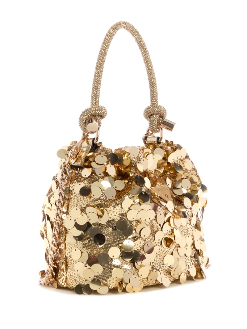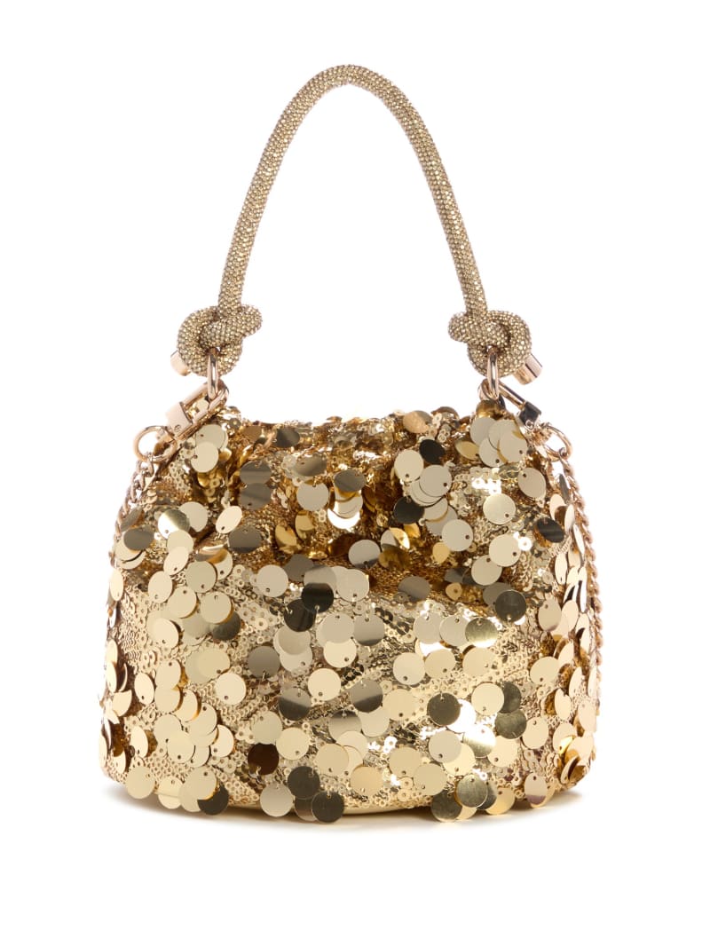 - Embellished top handle 5.5" drop. Detachable chain strap 21.25" drop.