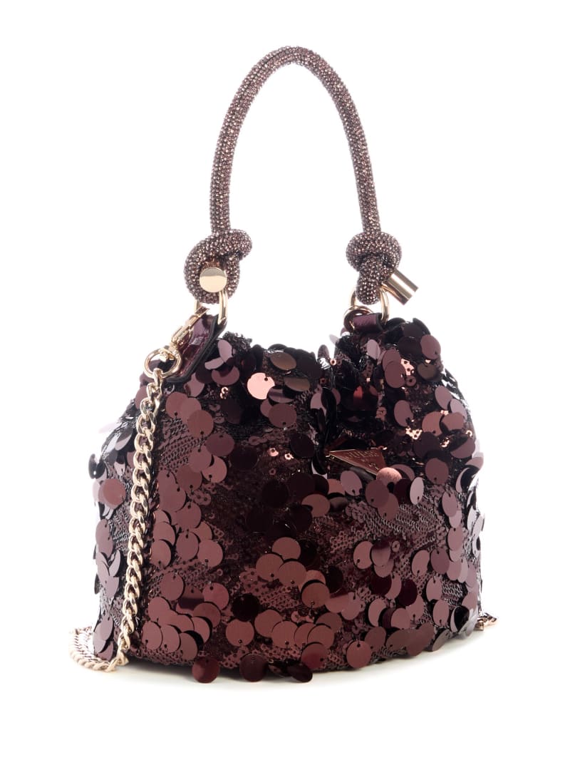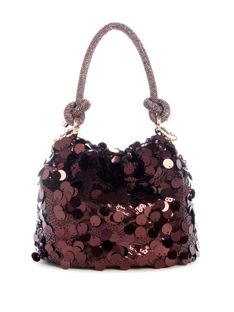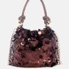 - Embellished top handle 5.5" drop. Detachable chain strap 21.25" drop.