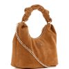 - Top handle with 5.75" drop. Detachable shoulder chain with 22" drop.