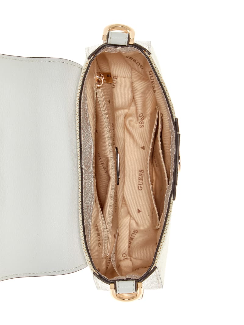 - Shiny gold-tone hardware