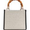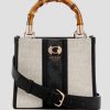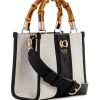 - Bamboo-inspired handle with 4" drop. Detachable strap with 23" drop.