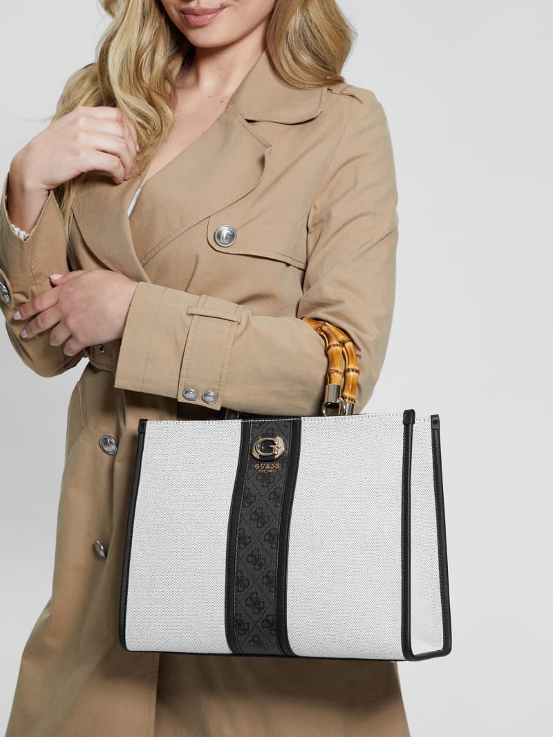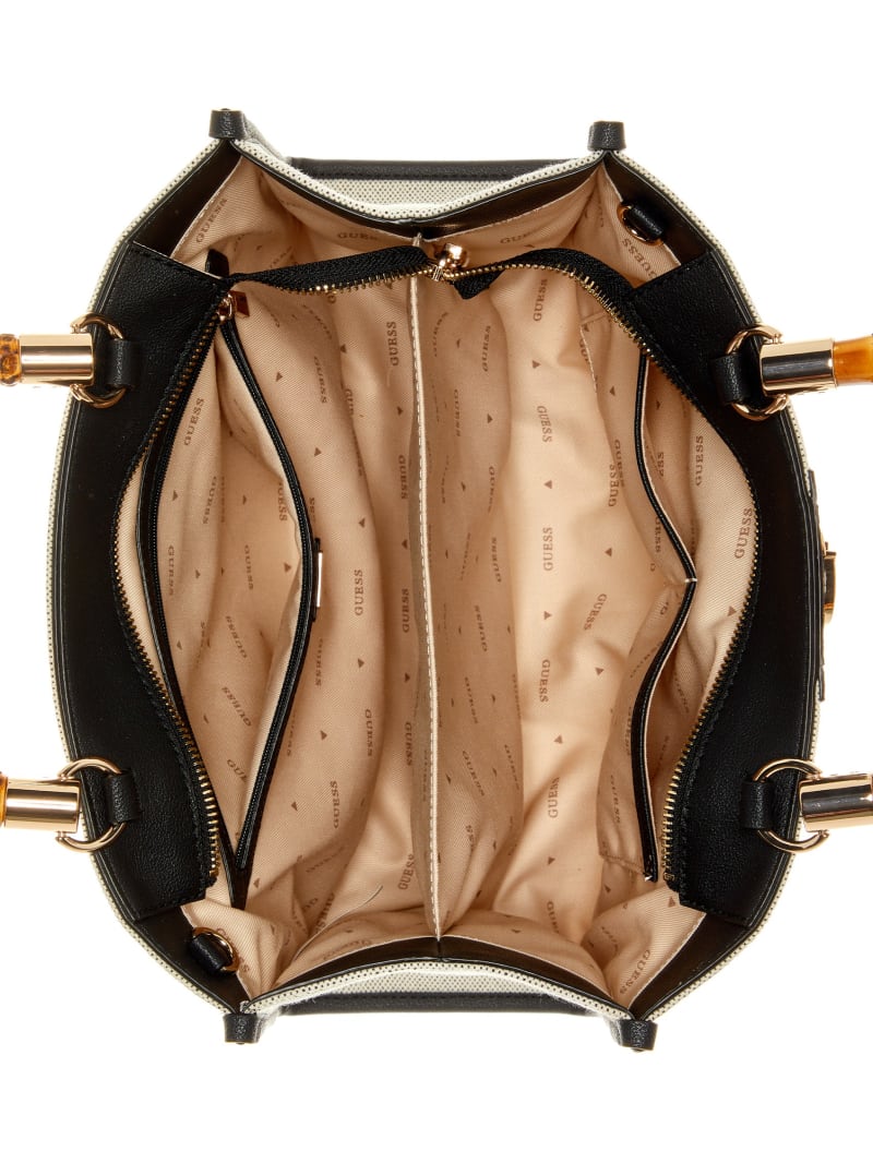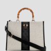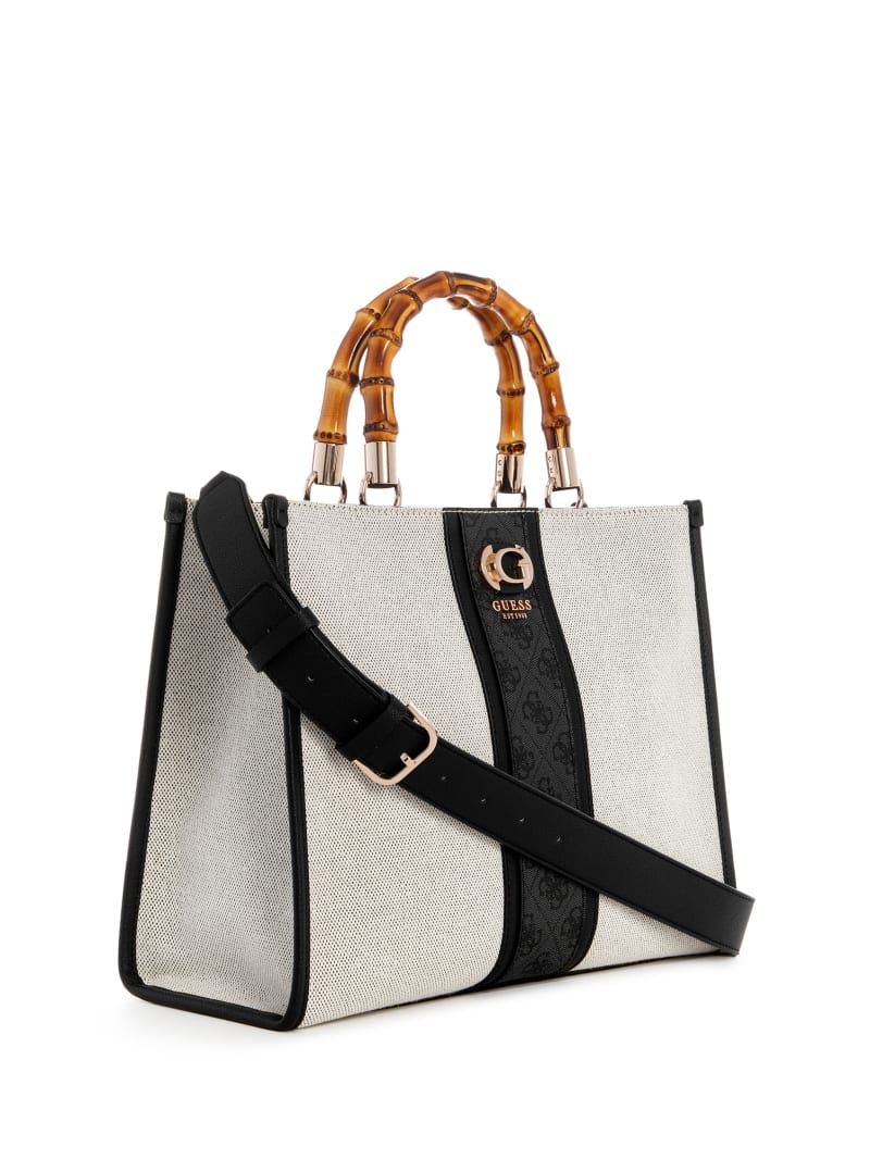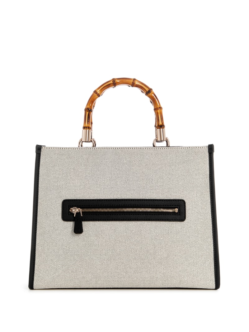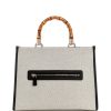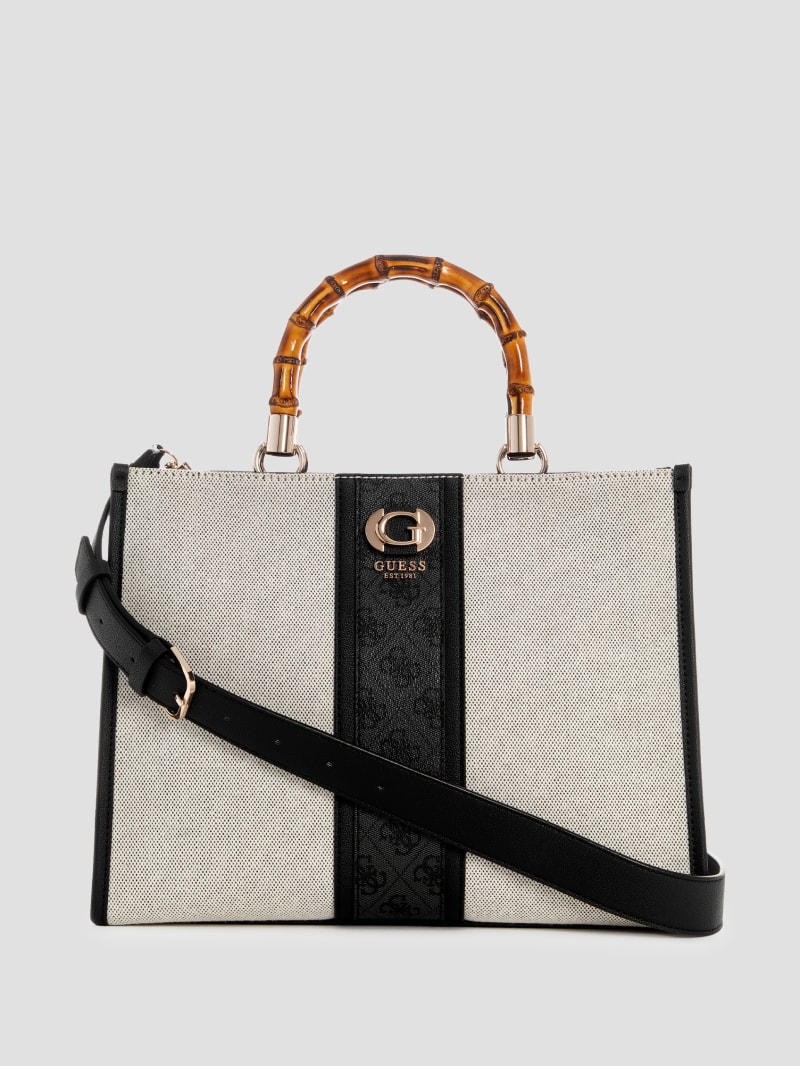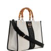 - Bamboo-inspired handle with 4.25" drop. Detachable strap with 19.75" drop.