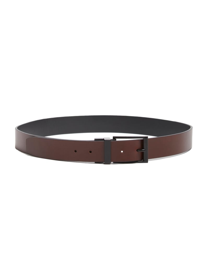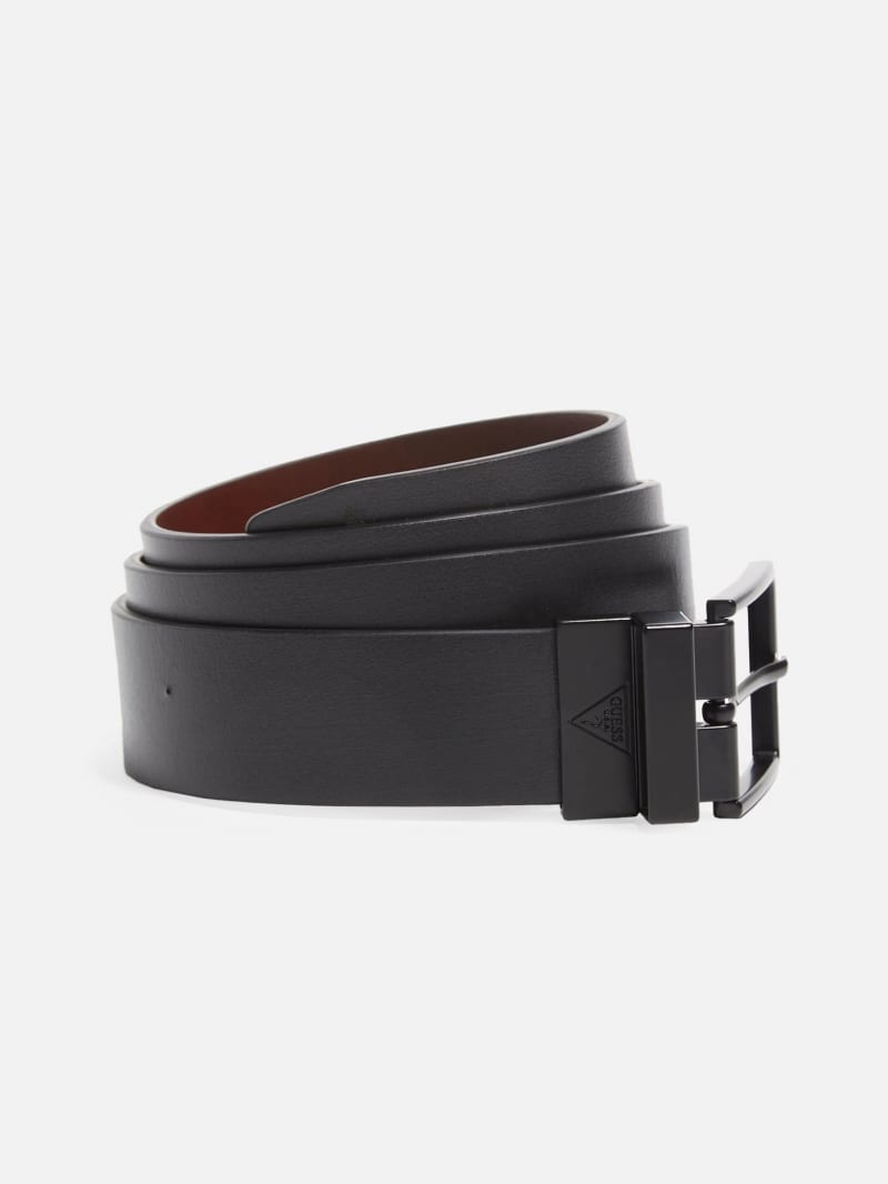 - Have more options with this faux-leather belt featuring contrasting sides and a reversible buckle