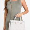 - Rolled top handles with 4.25" drop. Detachable crossbody strap with 21.25" drop.