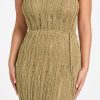 - Semi-sheer net fabrication with allover shimmer
