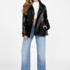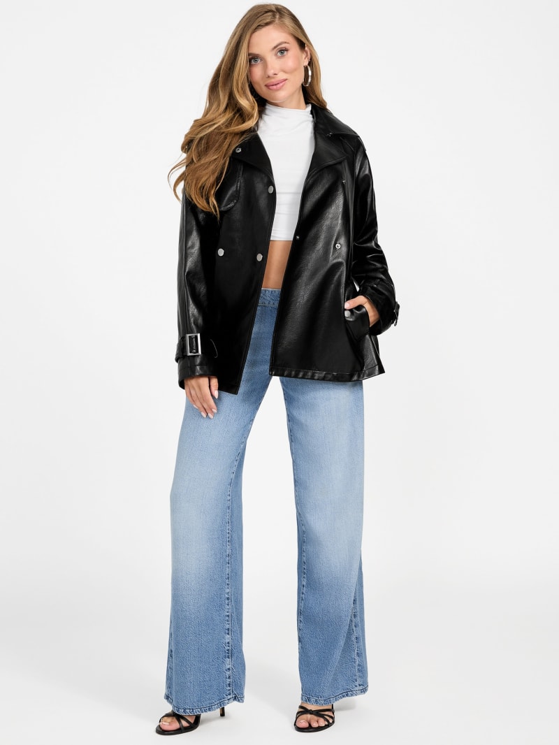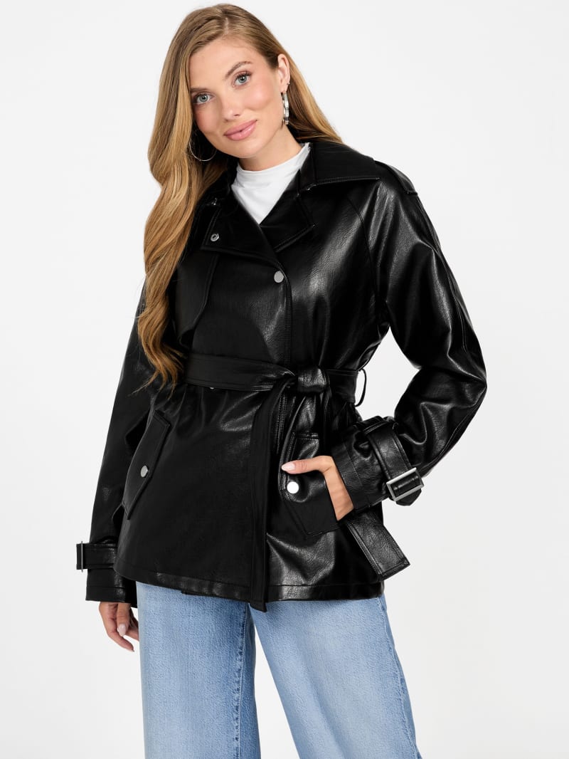 - Faux-leather short trench coat