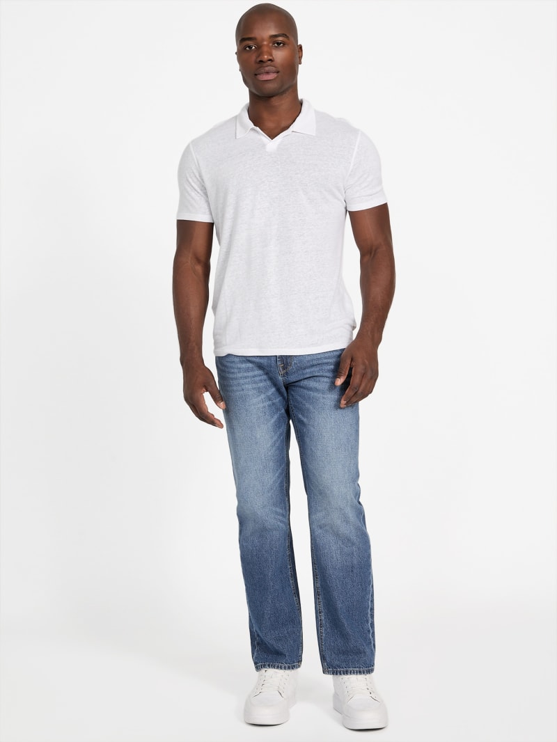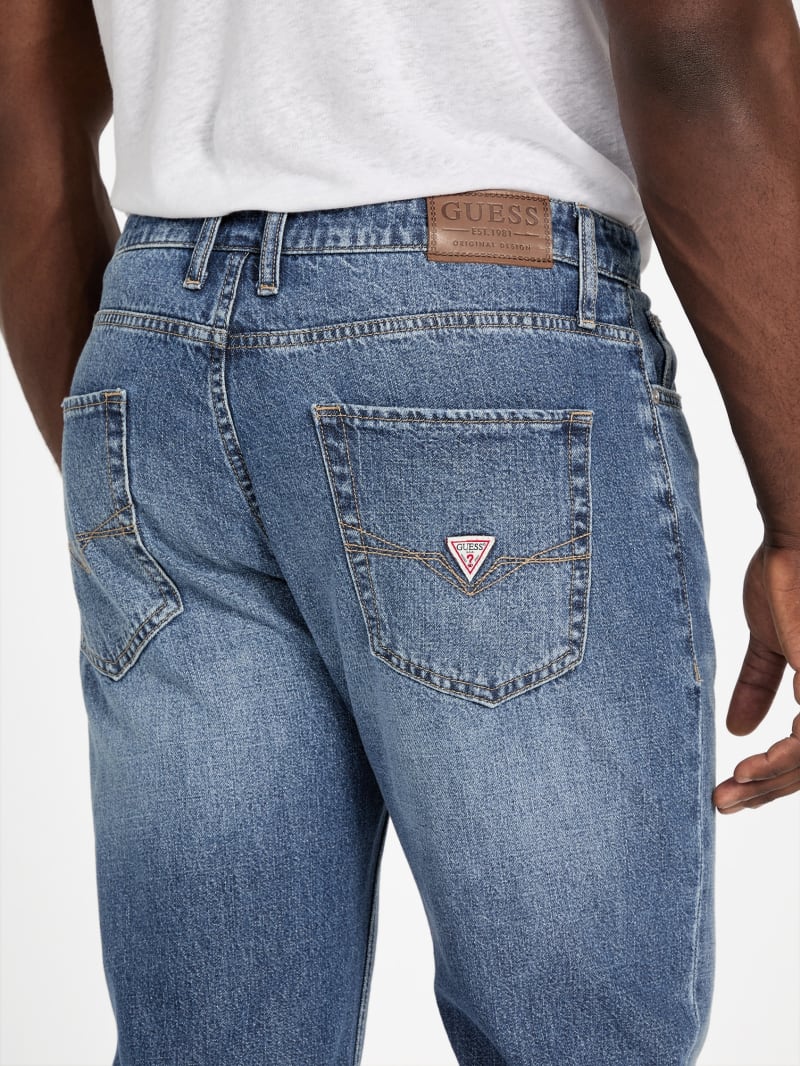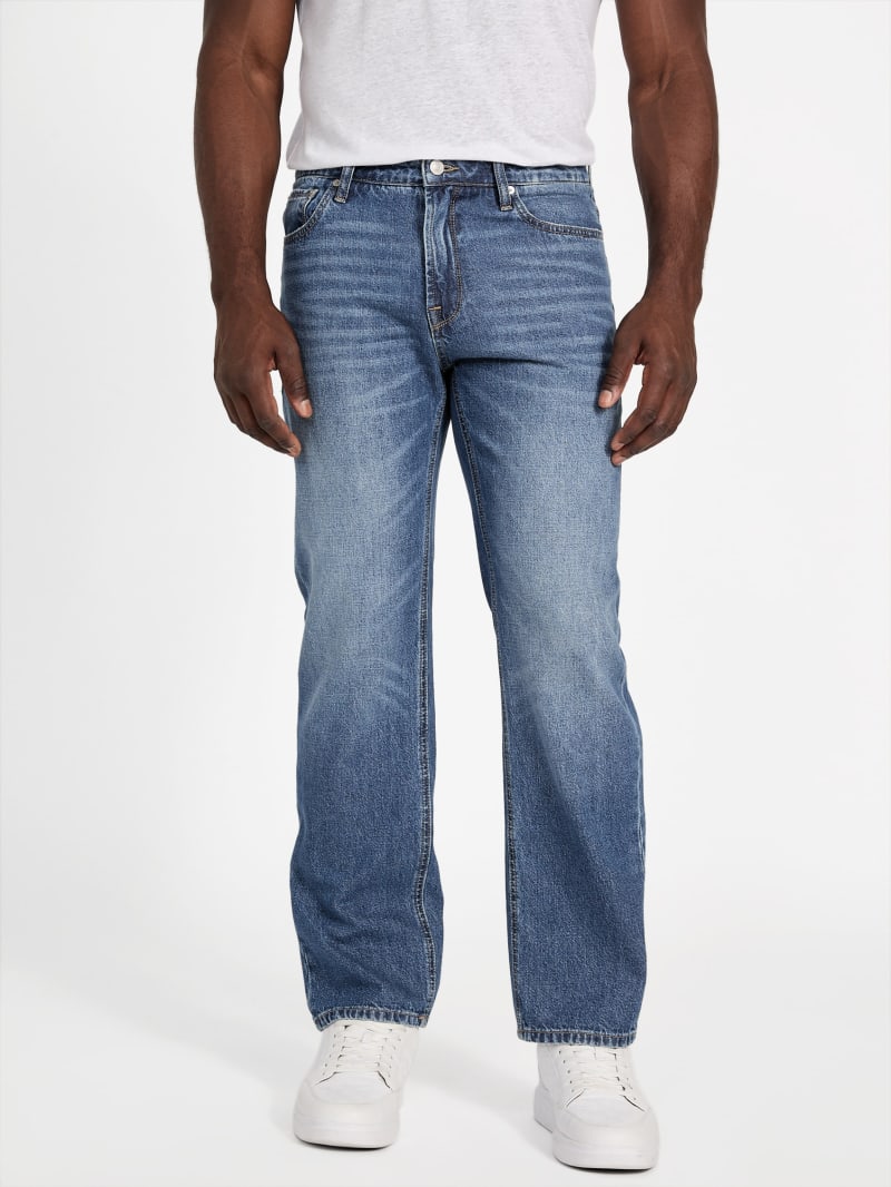 - Mid rise, sits at hips. Regular fit and straight leg.