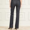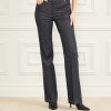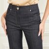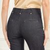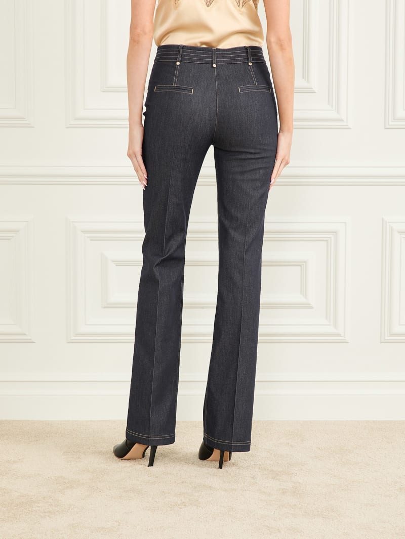 - Medium rise, sits at hips. Straight leg with front pintuck princess seams.