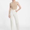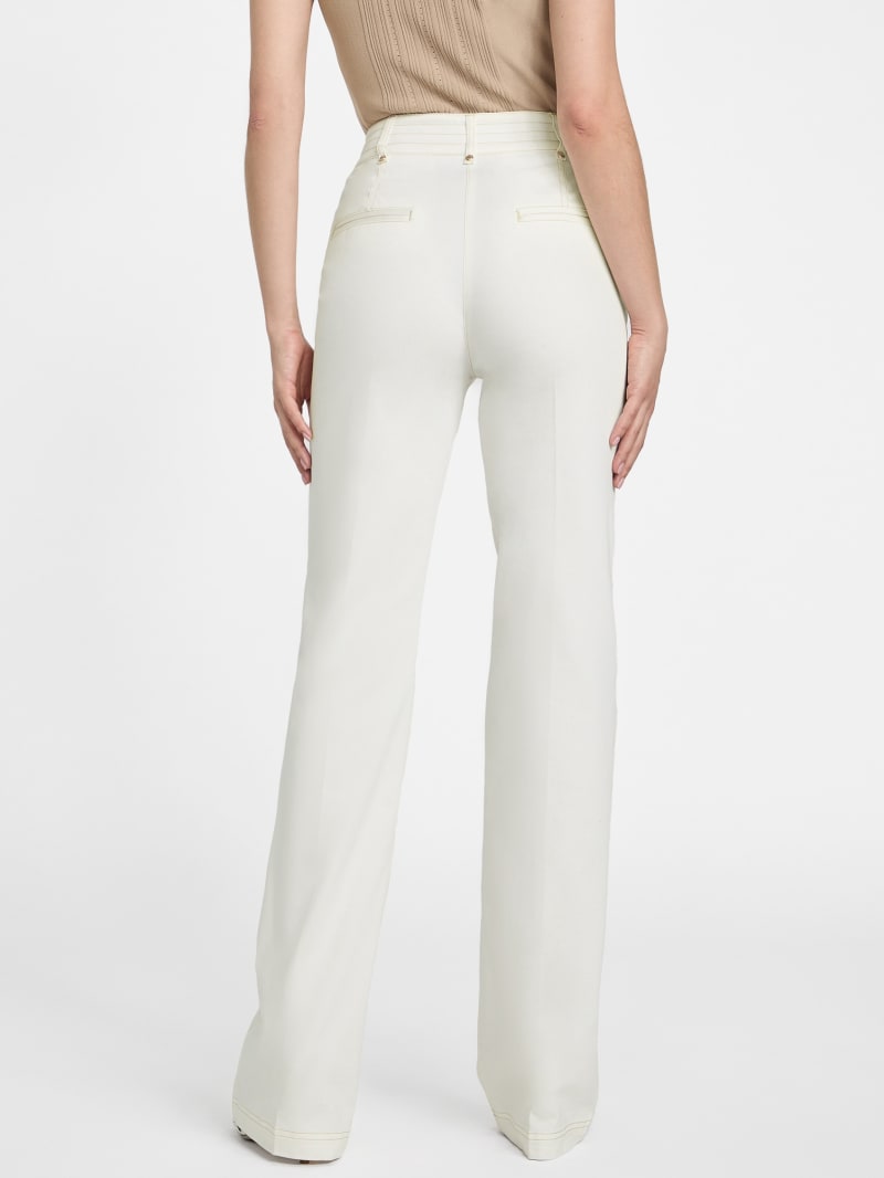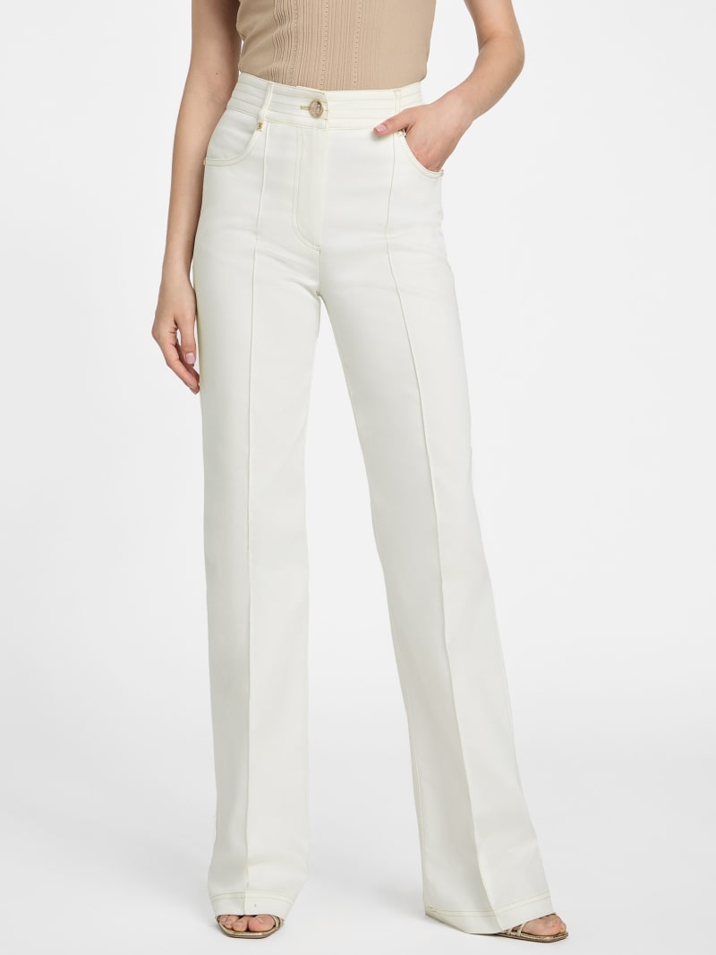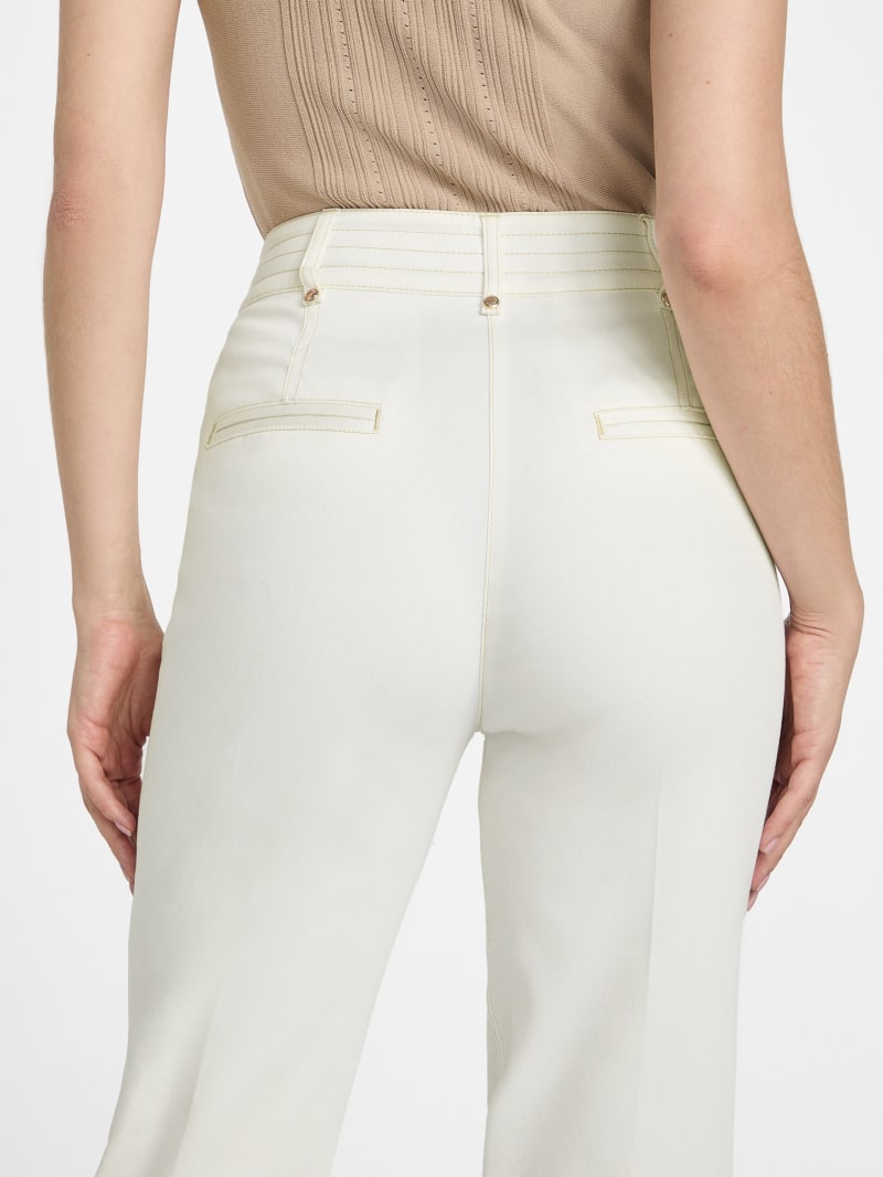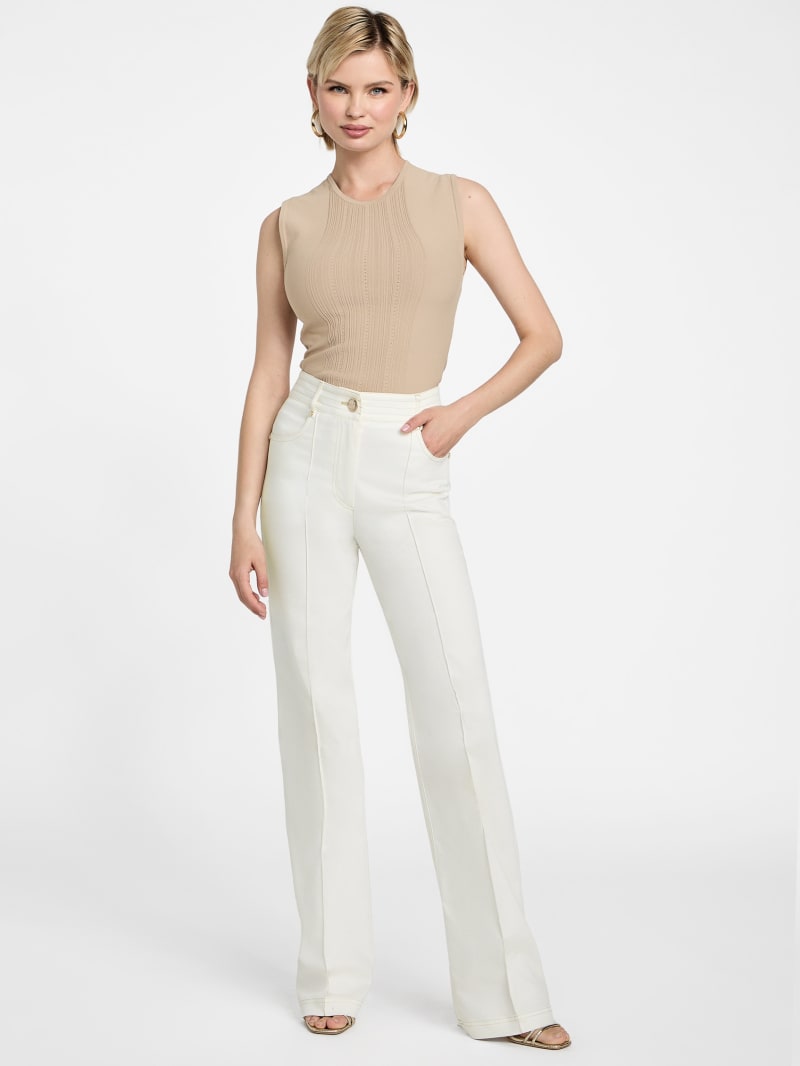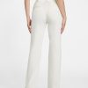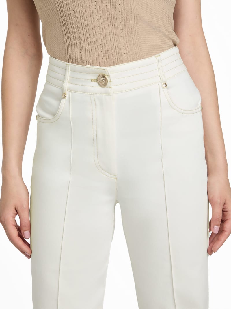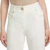 - Medium rise, sits at hips. Straight leg with front pintuck princess seams.