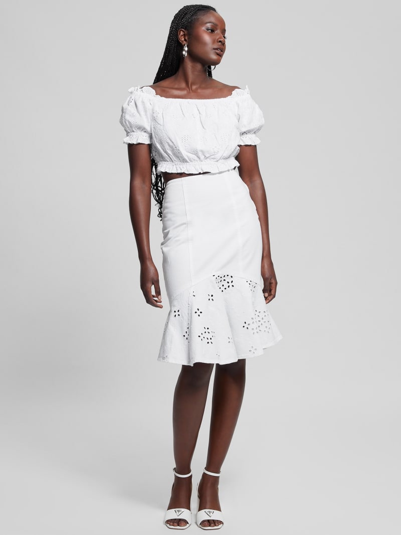 - Waist to hem: 25.5". Measurement taken from a size 27.