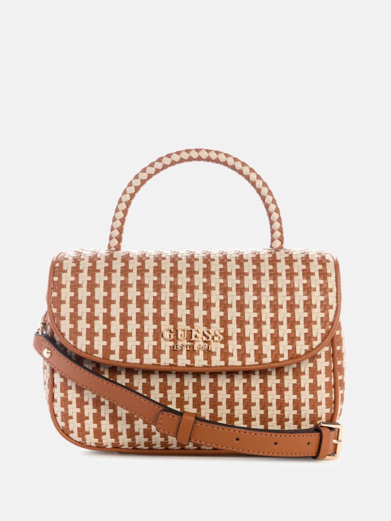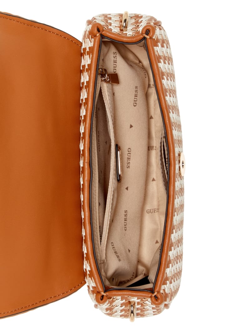 - Woven faux-leather flap bag