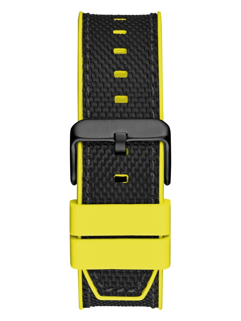 - Open face dial with neon-colored detailing
