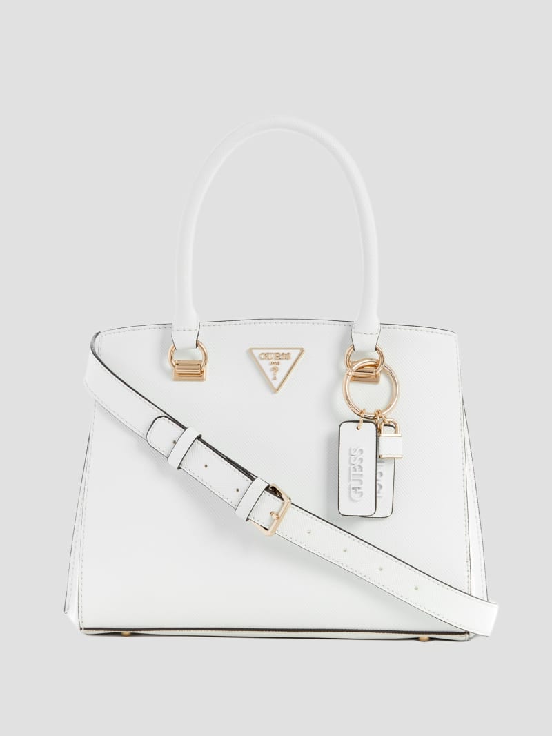 Ideal for any look, this essential satchel is designed in a Quattro G logo print with front icon hardware, dual rolled top handles and a detachable shoulder strap.