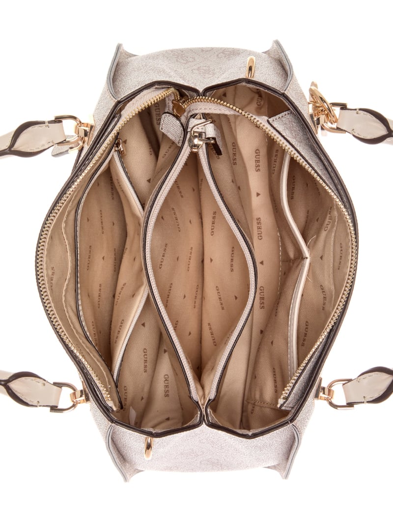 - Rolled top handles with 4" drop. Detachable shoulder strap with 22" drop.