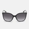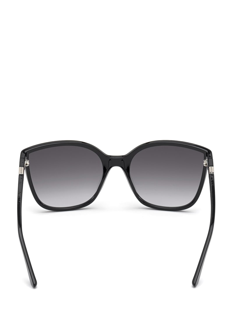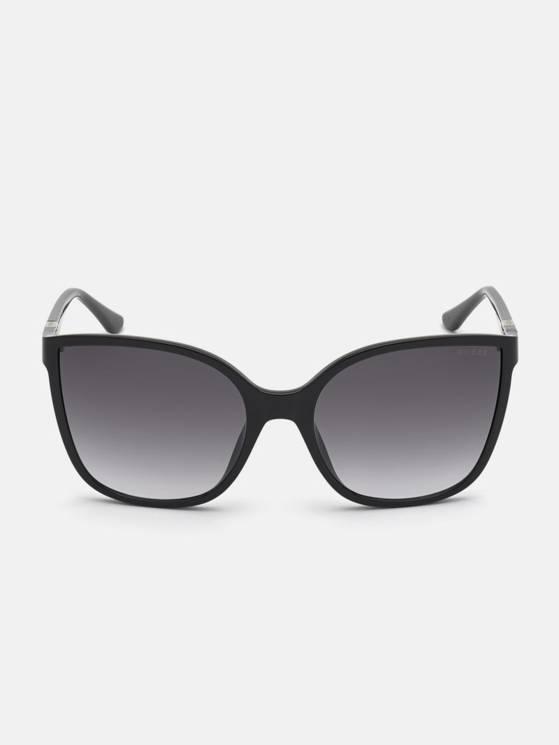 An ultra-feminine finish to any look, these plastic sunglasses are designed with bold oversized cat-eye frames and triangle accents at the temples.
