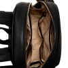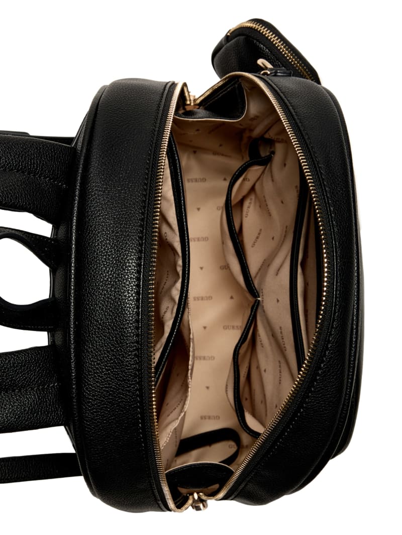 - Top webbed handle. Padded shoulder straps with mini zip pouch.
