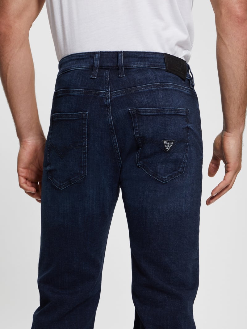 - Dark wash with whiskering and fading. Each garment has its own unique appearance.