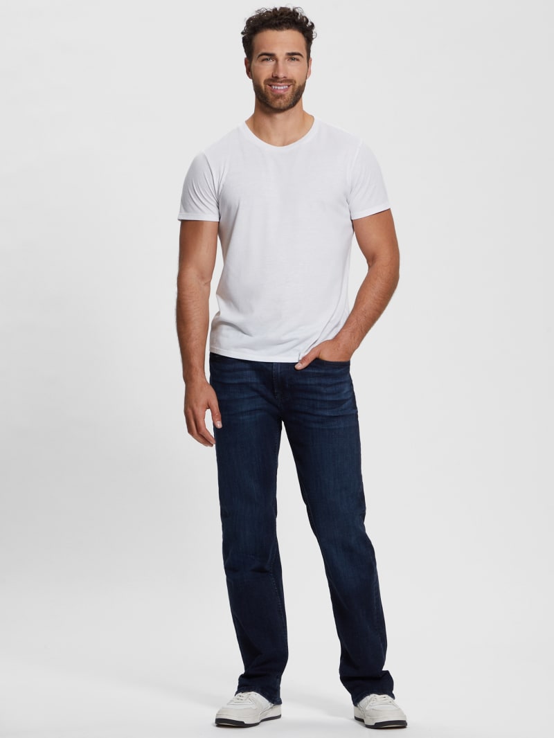 - Medium-rise, sits at hips. Regular fit and straight leg.