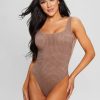 Dazzle and delight in this embellished one-piece swimsuit, complete with rhinestones and a daring open back.