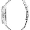 A silver-tone multifunction watch that will add elegance to your everyday look. Complete with rhinestone embellishments and a logo detail. Day, date and international time dials.
