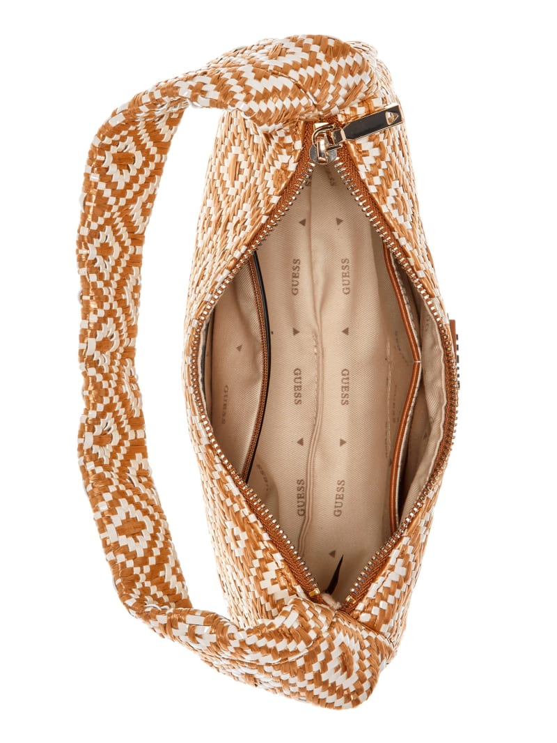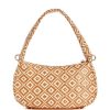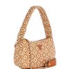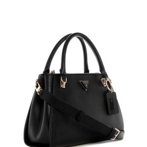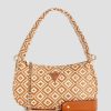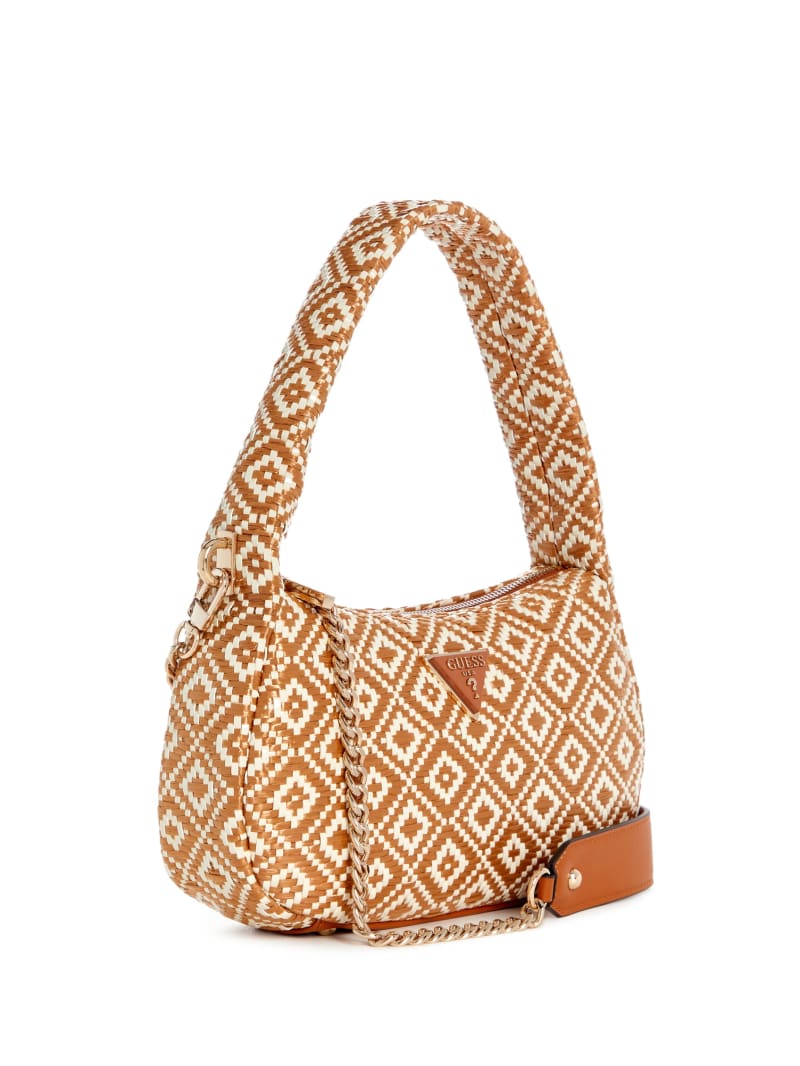 - Top handles with 7.5" drop. Chain and faux-leather crossbody strap with 22" drop.