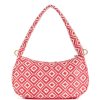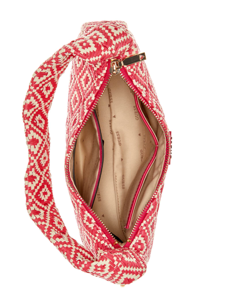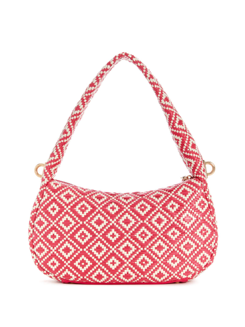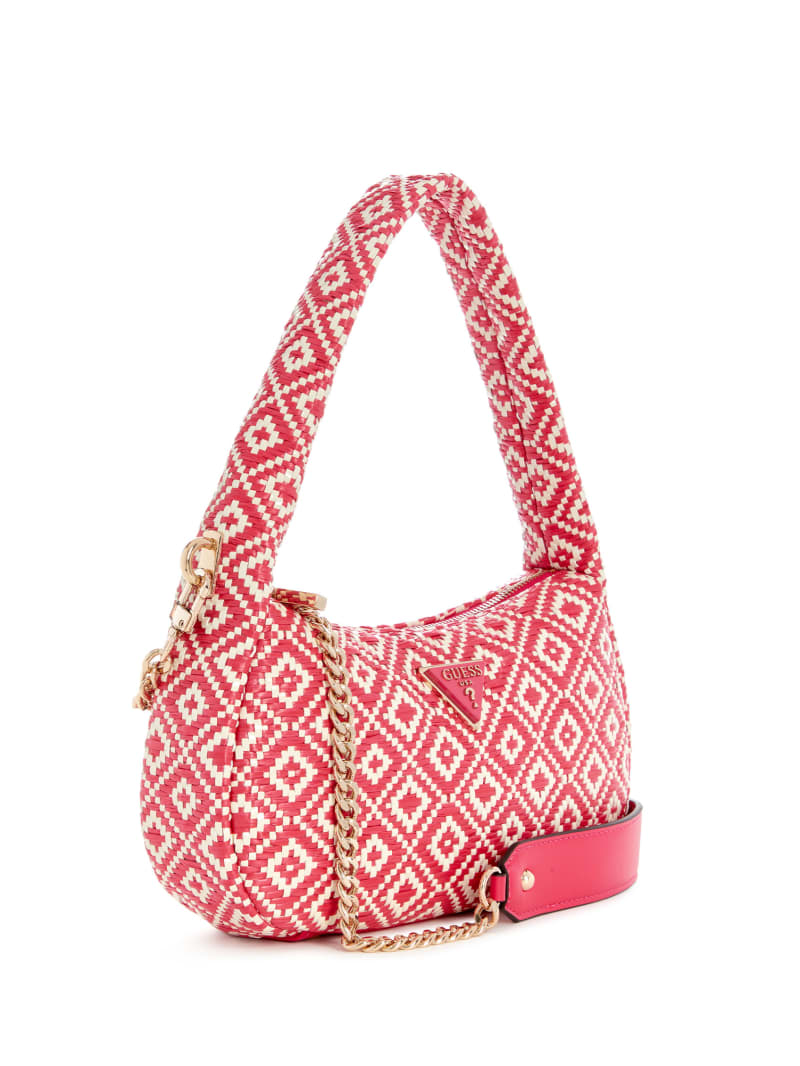 - Top handles with 7.5" drop. Chain and faux-leather crossbody strap with 22" drop.