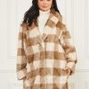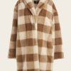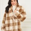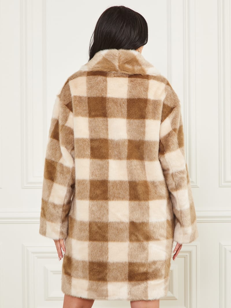 Shine with your true colors in this faux-fur coat. Featuring a vibrant checkered design, stand collar with a V-neckline and wide dual pockets.
