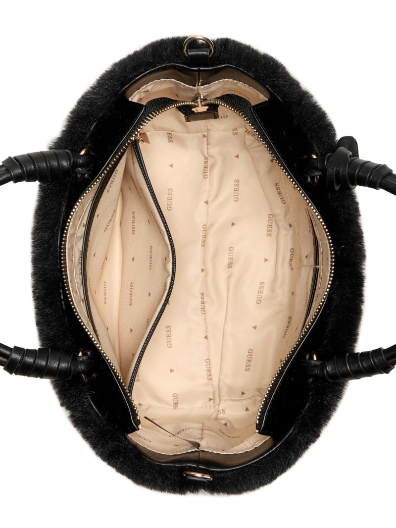 - Faux-fur exterior with crystal jewel accents