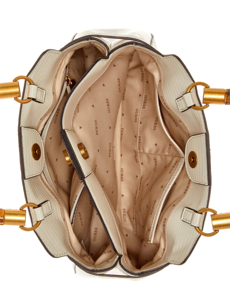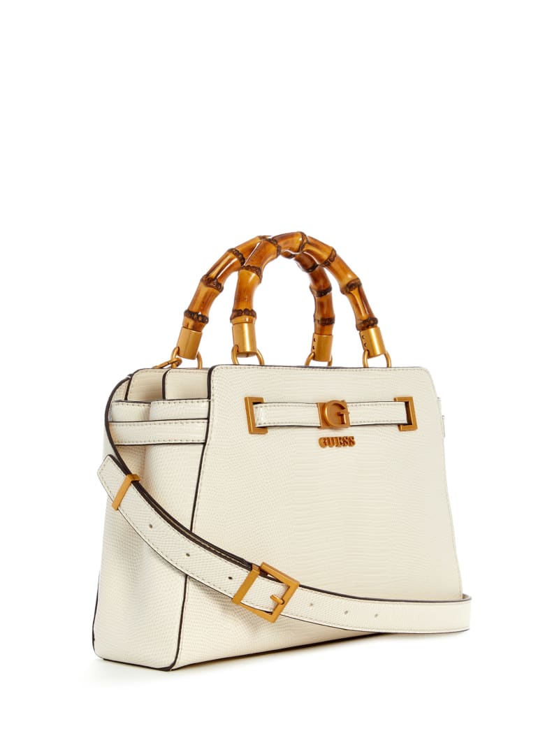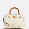 - Bamboo top handle with 4.75" drop. Detachable shoulder strap with 20.5" drop.