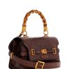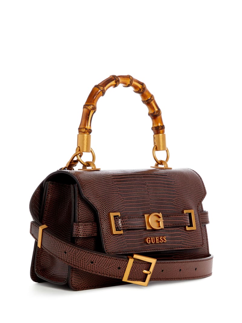 - Faux-leather top-handle flap bag
