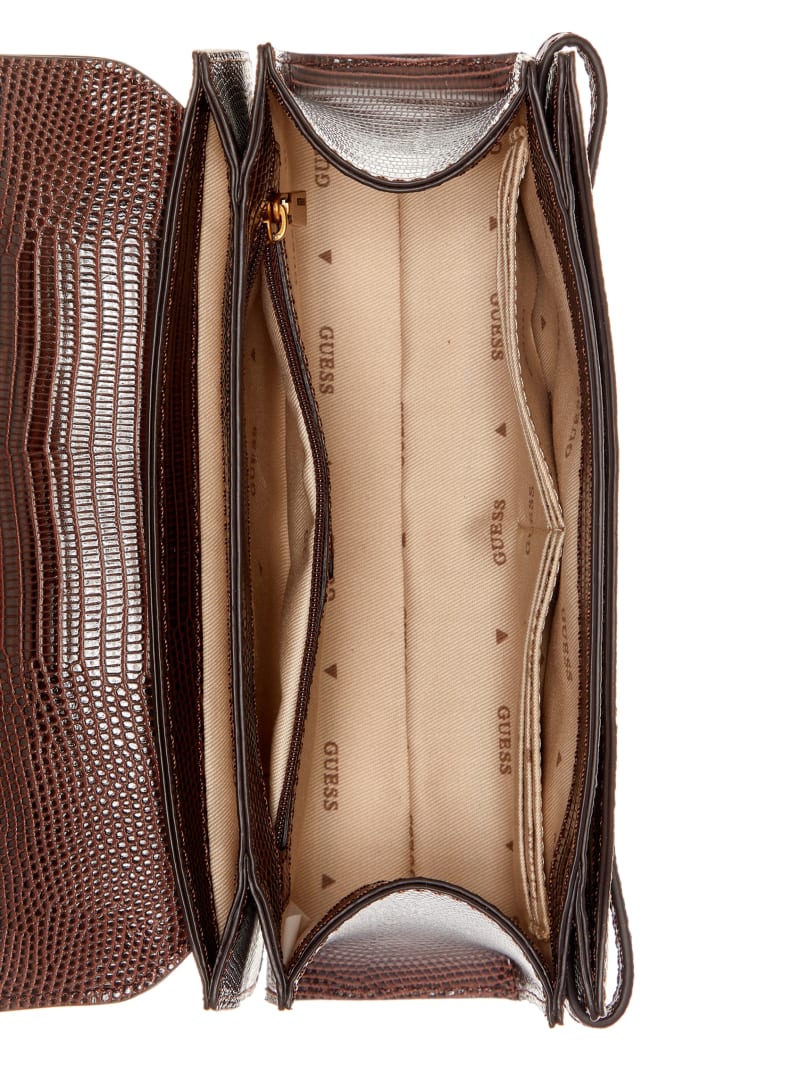 - Textured faux-lizard embossing
