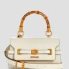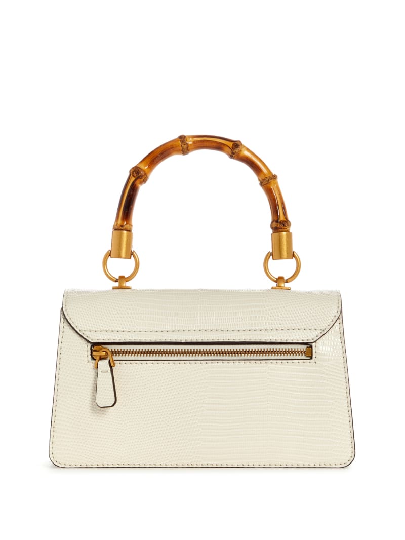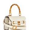- Bamboo top handle with 3.5" drop. Detachable shoulder strap with 22.75" drop.